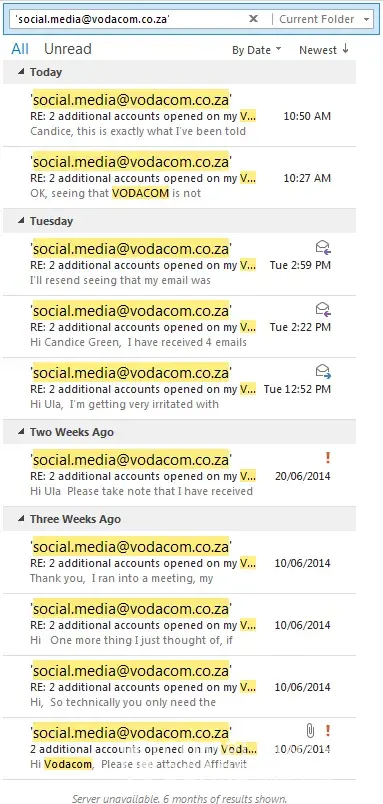 01 october - 23 october 2017 :: despite e-mail after e-mail after e-mail and phonecall after phonecall to vodacom 4u in midrand - they chose to ignore us - hoping that we would go away.