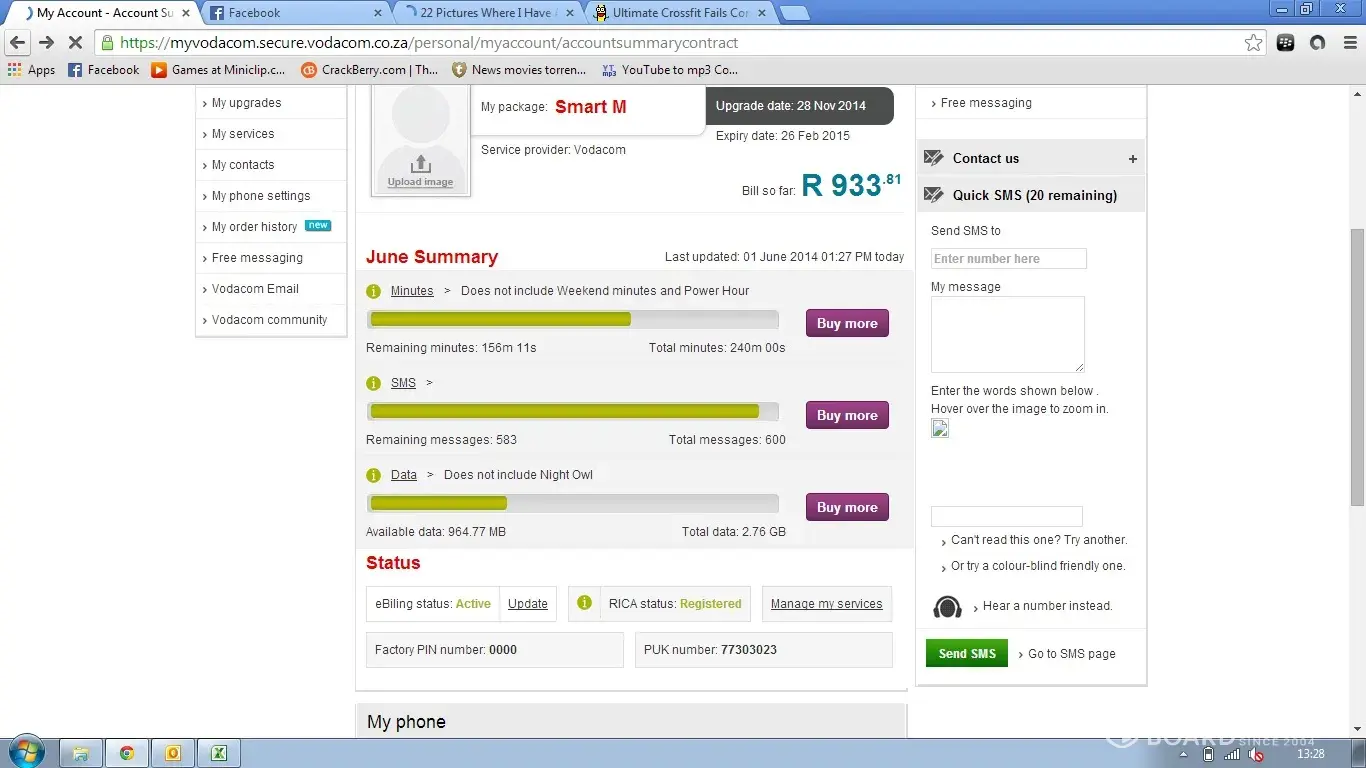 On 1/7/14 I did an upgrade via Vodacom's on-line, to a