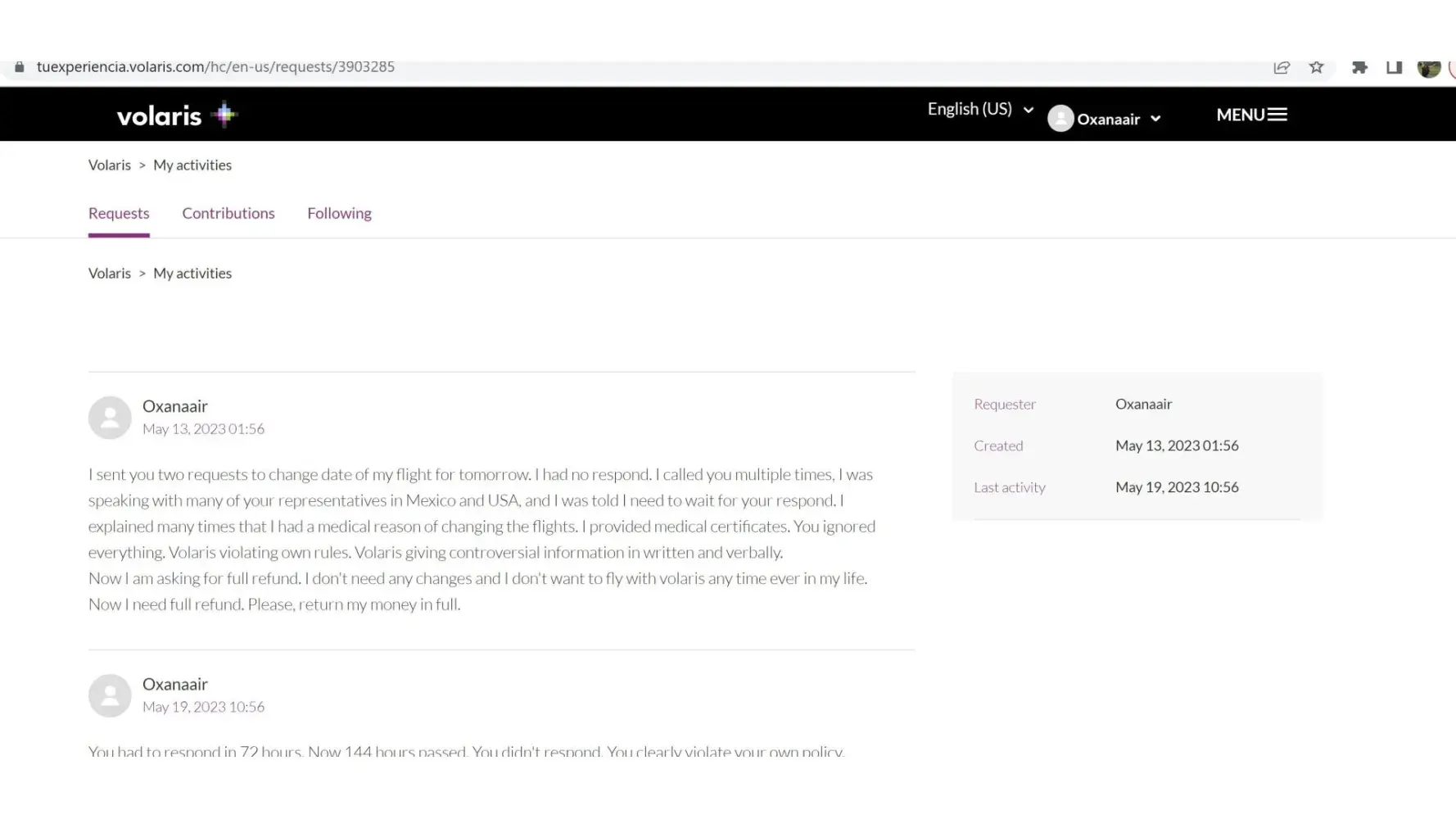 This will be sent to the Better Business Bureau and also the Mexican legal consumer authorities. This is my flight number. Please respond as soon as possible last time.