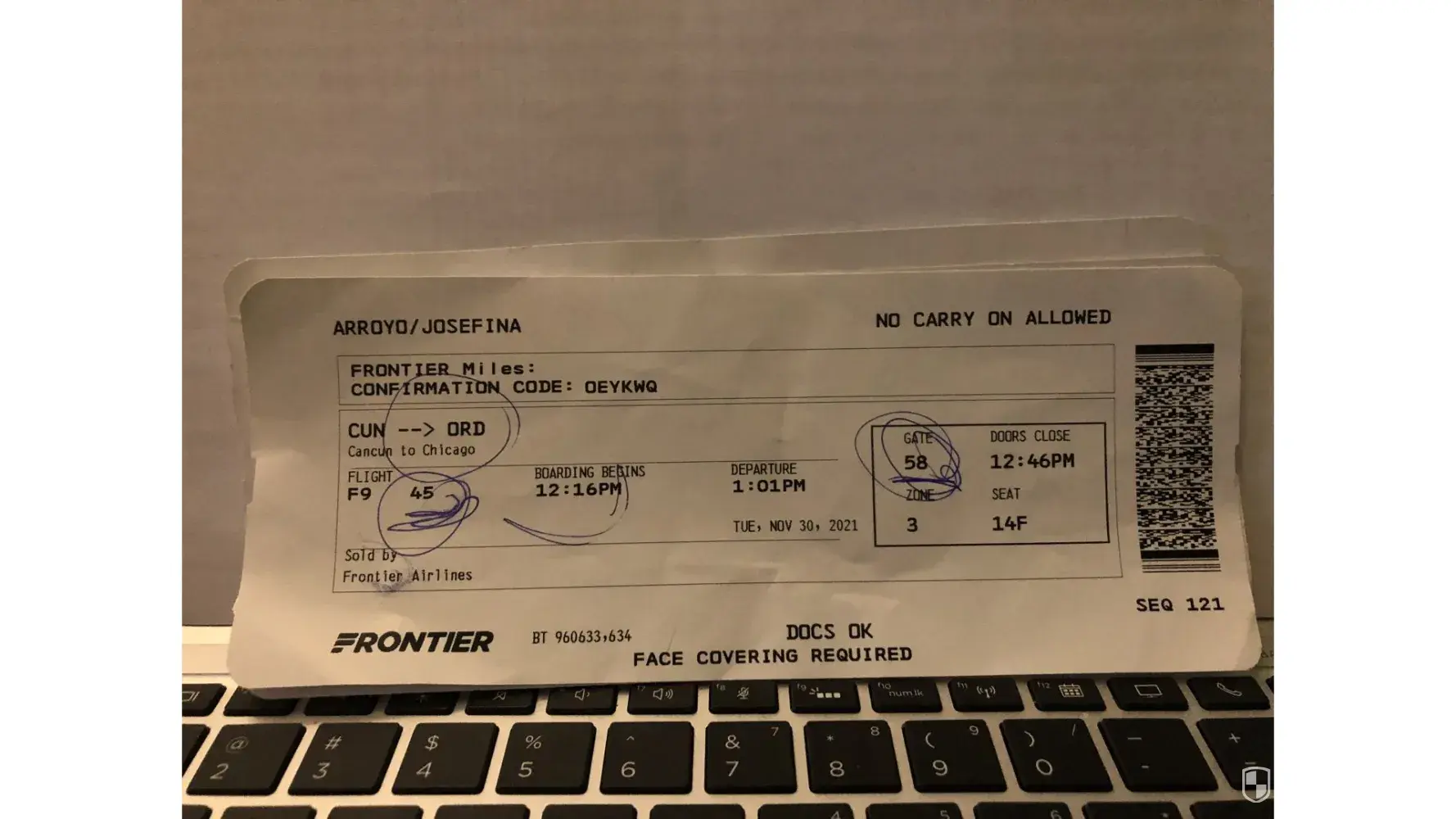 I want to express a complaint related to your horrible service. Upon arrival at the Cancun airport, reservation WDQ2PD on Tuesday November 30, 2021. By giving Frontier Airline agents our reservation WDQ2PD they notify us that we could not travel to Chicago since they could not find our reservation. The Frontier Airline agent advises us to contact Volaris to notify them that the WDQ2PD reservation was incorrect. Had to call Volaris right in the spot. After about 10 minutes, talking to the Volaris agent, he informs us we CANNOT travel from Cancun to Chicago that we needed to go MXDF and leave MXCD at night arriving to Chicago at midnight. We absolutely did not accept. The Frontier agent asks me to speak to the young man from Volaris to explain that there were 17 seats available that he only need the confirmation number from Volaris. The young man from Volaris insisted that he cannot give us the confirmation number since we must travel to MXDF and from there to Chicago. Me, with diabetes type two. After pleading with the young man from Volaris, he did NOT help us and hung up the phone on us. The young man from Frontier airline info I want to express a complaint related to your horrible service. Upon arrival at the Cancun airport, reservation WDQ2PD on Tuesday November 30, 2021. By giving Frontier Airline agents our reservation WDQ2PD they notify us that we could not travel to Chicago since they could not find our reservation. The Frontier Airline agent advises us to contact Volaris to notify them that the WDQ2PD reservation was incorrect. Had to call Volaris right in the spot. After about 10 minutes, talking to the Volaris agent, he informs us we CANNOT travel from Cancun to Chicago that we needed to go MXDF and leave MXCD at night arriving to Chicago at midnight. We absolutely did not accept. The Frontier agent asks me to speak to the young man from Volaris to explain that there were 17 seats available that he only need the confirmation number from Volaris. The young man from Volaris insisted that he cannot give us the confirmation number since we must travel to MXDF and from there to Chicago. Me, with diabetes type two. After pleading with the young man from Volaris, he did NOT help us and hung up the phone on us. The young man from Frontier airline informs us it will cost us $ 2,336.66 one-way tickets to get home. After more than an hour of insisting / desperation agony about what to do, we had NO choice but to buy the most expensive tickets for three adults