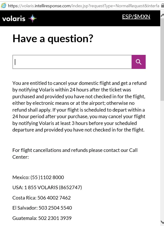 They also told me I should have done it electronically, however it is not visible when you search the Volaris website, it just shows you the phone numbers to call (screen shot attached). I did not realize electronically was an option until 7:30PM when I had to dig through the website and find it under an option on My Trips.