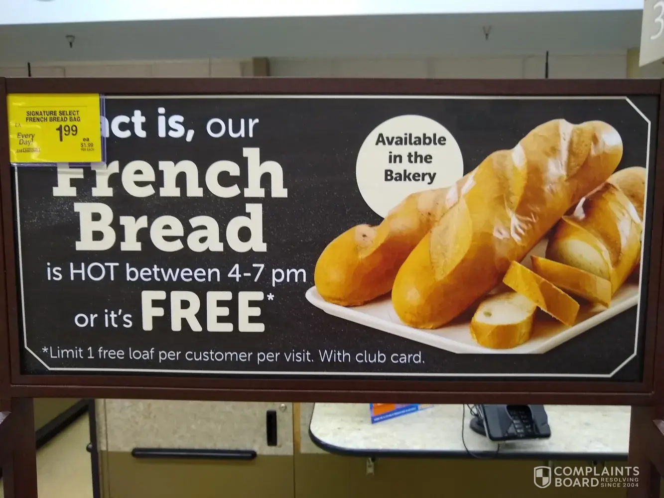 This incident occurred on 07/17/19 at 21:35. REF: [protected]. The Vons at my location currently has a promotion for fresh french bread. The promotion states that "Fact is, our french bread is HOT between 4-7 pm, or it's FREE." (See attached image.) This statement is confusing because it could mean that (1) if the bread is not hot between 4-7 pm, it'd be...