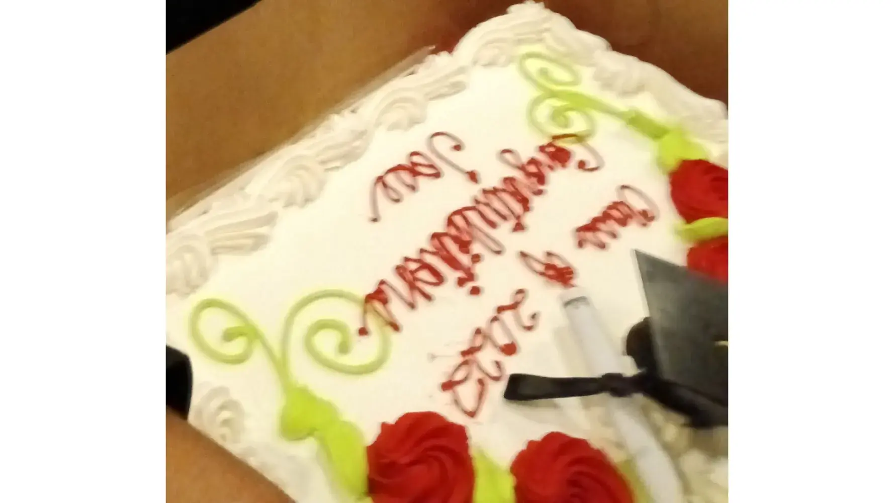 I ordered full sheet graduation cake with fresh strawberries n yellow n black school colors. When I pick it up the cake was red writing n flowers and there was no filling. This west Covina Vons. My son senior graduation 5/31/2022.. this was a upset to me cuz I always used Vons for bakery n I never had a problem before
