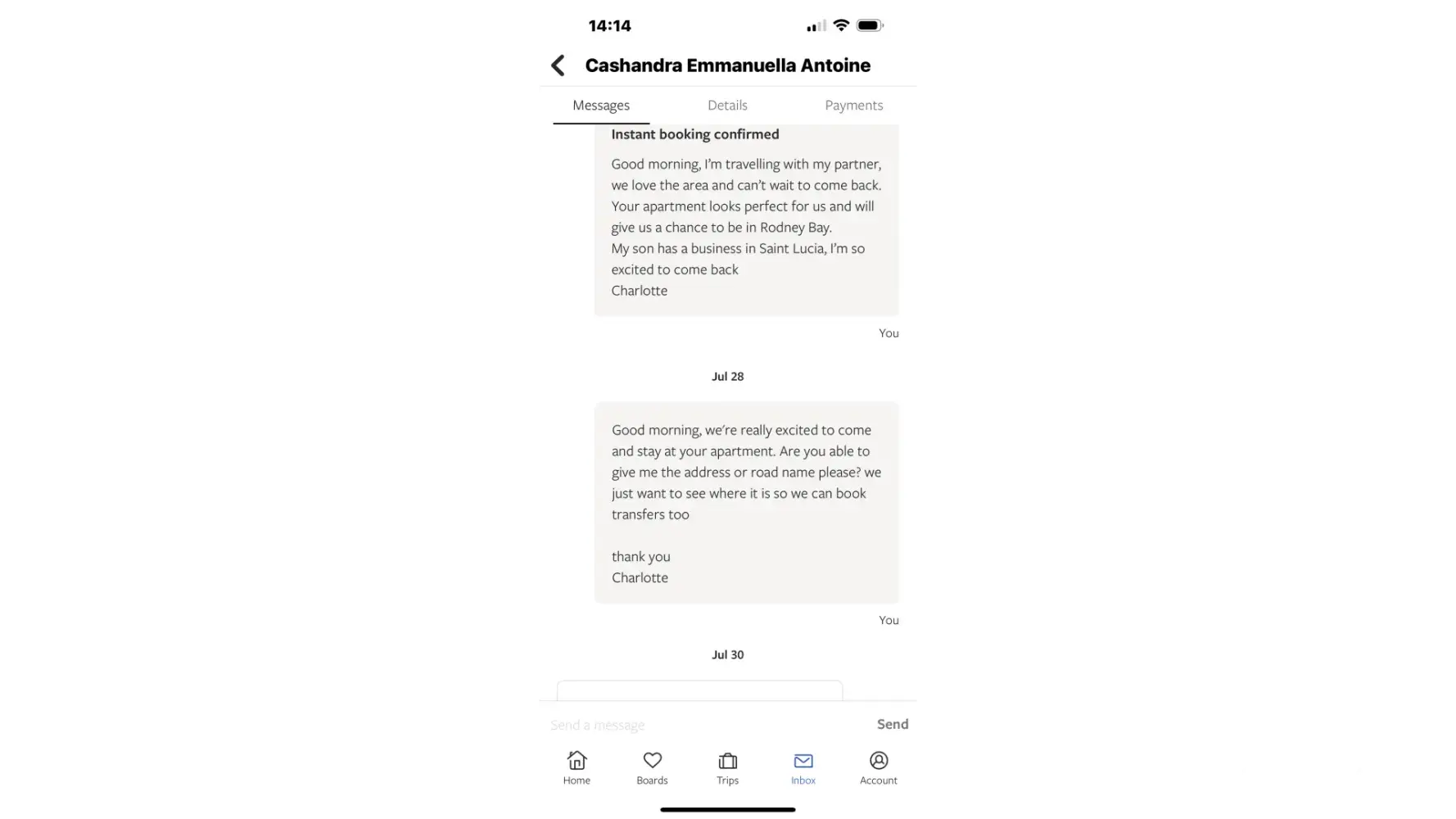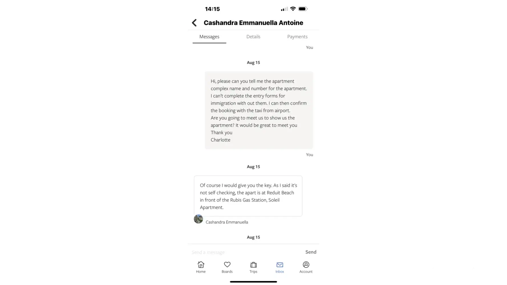 We were out of pocket so couldn't do what we wanted to do as we had to use the cash for the replacement apartment. We weren't able to go to the CPL cricket to see our friends who were playing as we were trying to find out what was happening and no one was telling us.