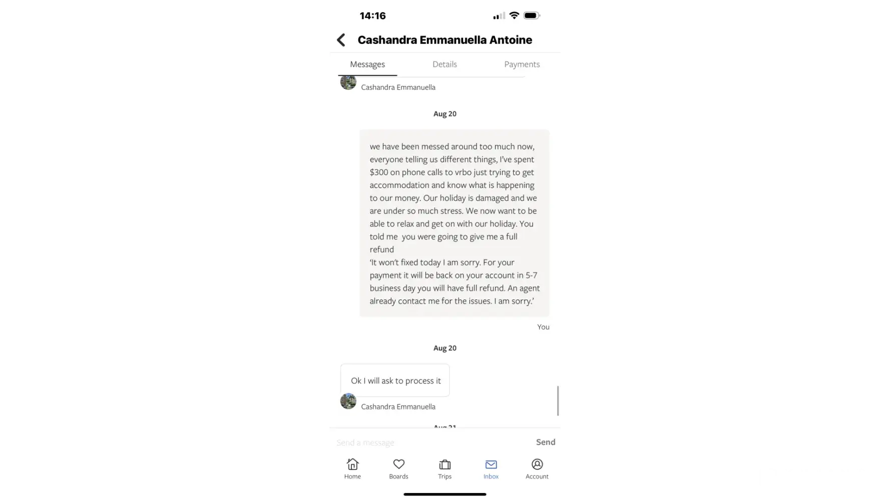 Issue with property being doubled booked and not receiving refund!