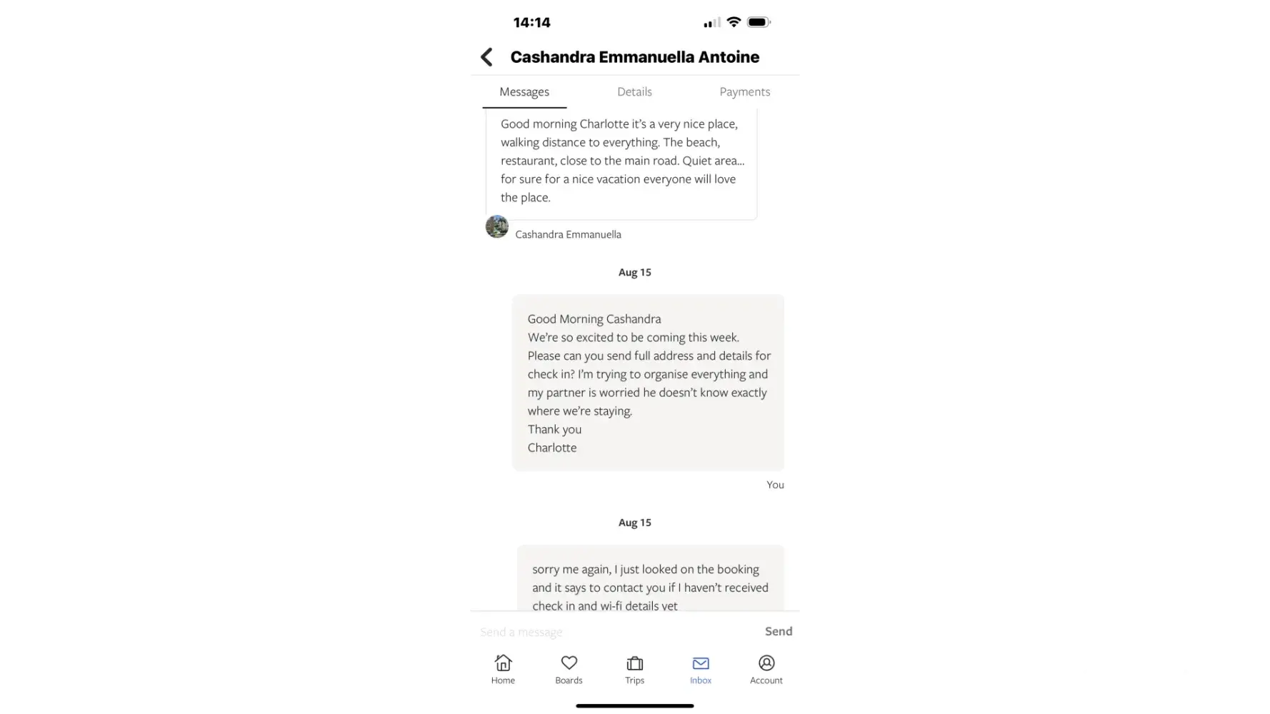 I booked an apartment in Florence on 5th March for myself and 2 friends. The property is #[protected]. I received a confirmation email and consequently booked flights for 12-15 May 2025. 2 days ago (10 April) after coming back from a trip realised I hadn't had any communication with the host. I sent a message stating our expected arrival time on 12th May...