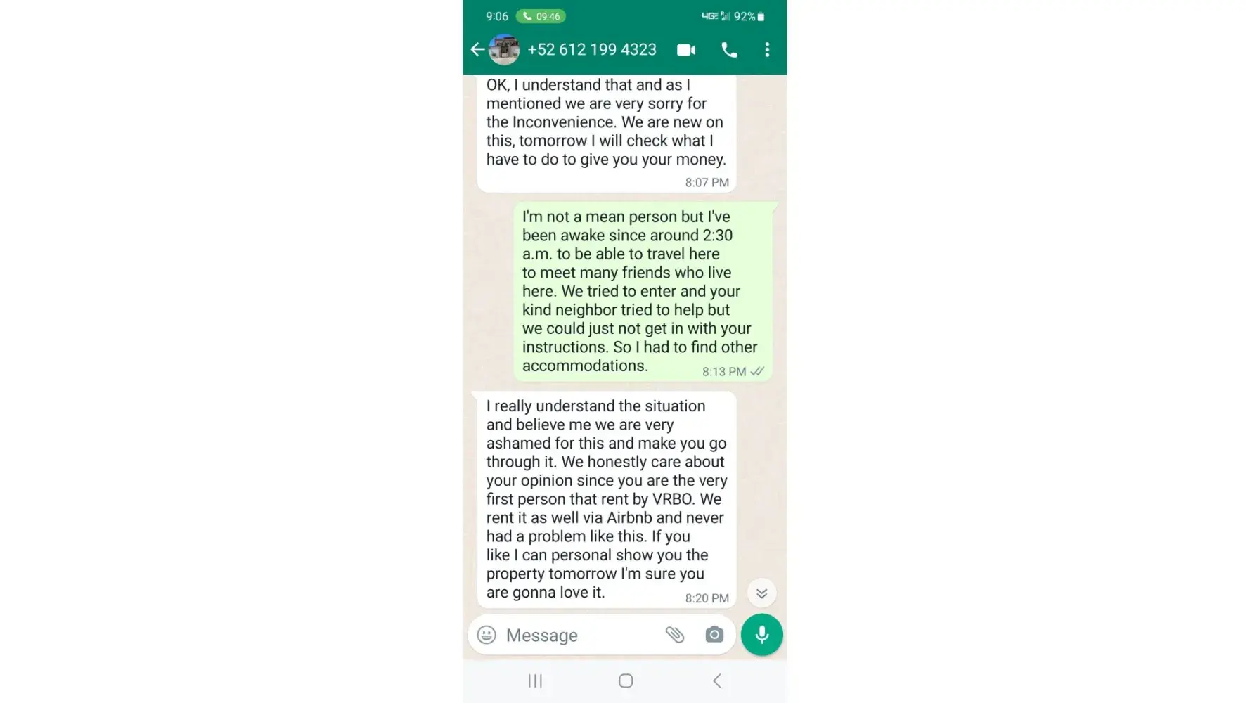 It's been almost a month repeatedly contacting VRBO to get all of my money back. The representatives of VRBO could not have been nice but they have been totally ineffective in getting my refund. In fact, I am on hold today, September 11, 2023 at 1:06pm . . . . this call is over 26 minutes and over 20 of it is me on "hold". I will not give this up. I will be rightfully receiving my money. Frankly, I should be given a credit for all of the work I have put into this situation; hours and hours. I was in Berlin in March this year and my VRBO was outstanding and the reviewer gave me perfect ratings. I see already that Barry B also rated my stay and gave me one star in every category. Unfortunately, I was not in his place for more than one hour. I will continue to monitor VRBO and its premier host Barry B from Medellin, Colombia.