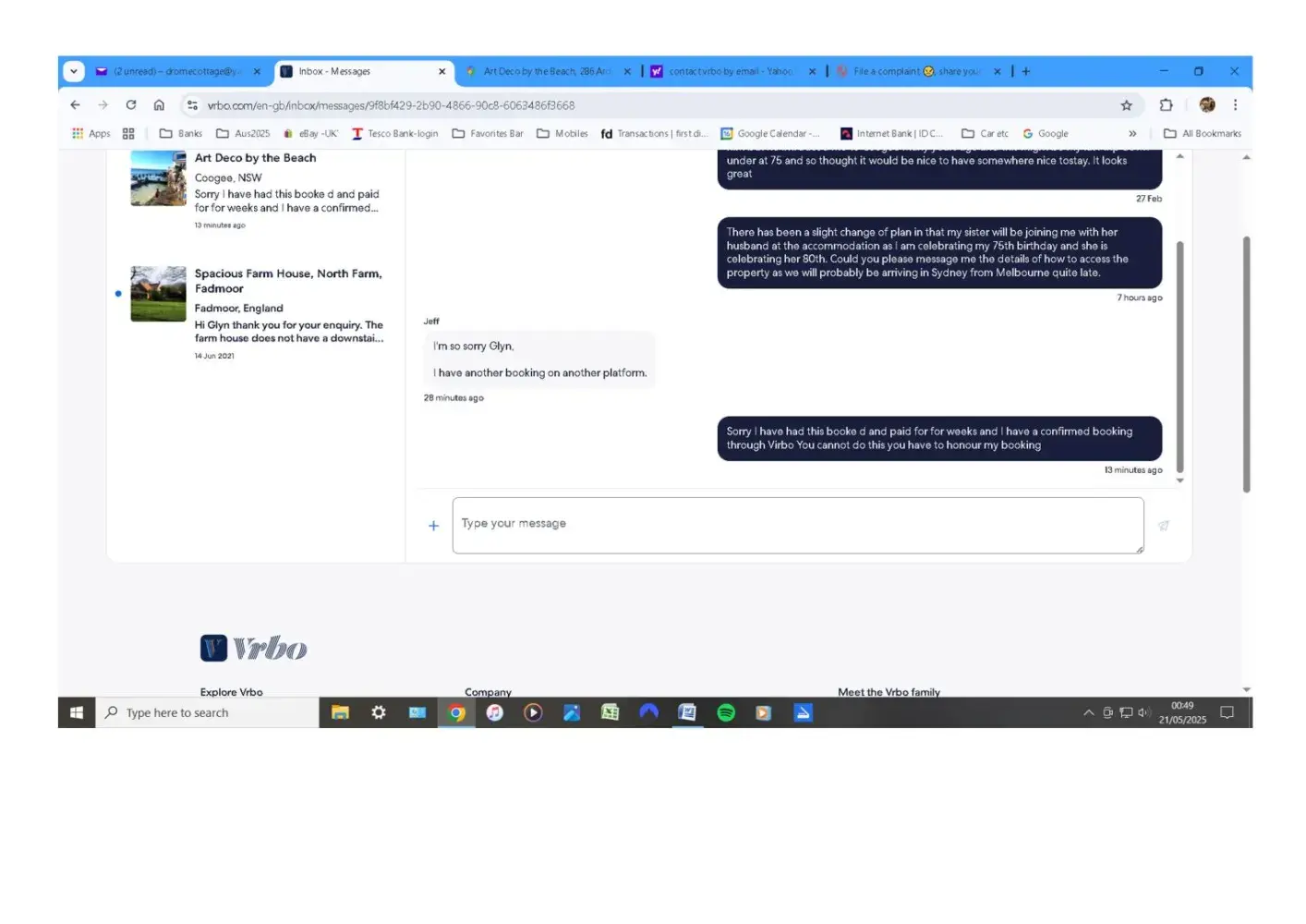 Desired outcome: I want my booking. I am 75 and my sister is 80 and we are celbrating our birthdays together We are travelling up from Melbourne where she lives to have the celebration with my son who lives in SydneyThis is just not good enough