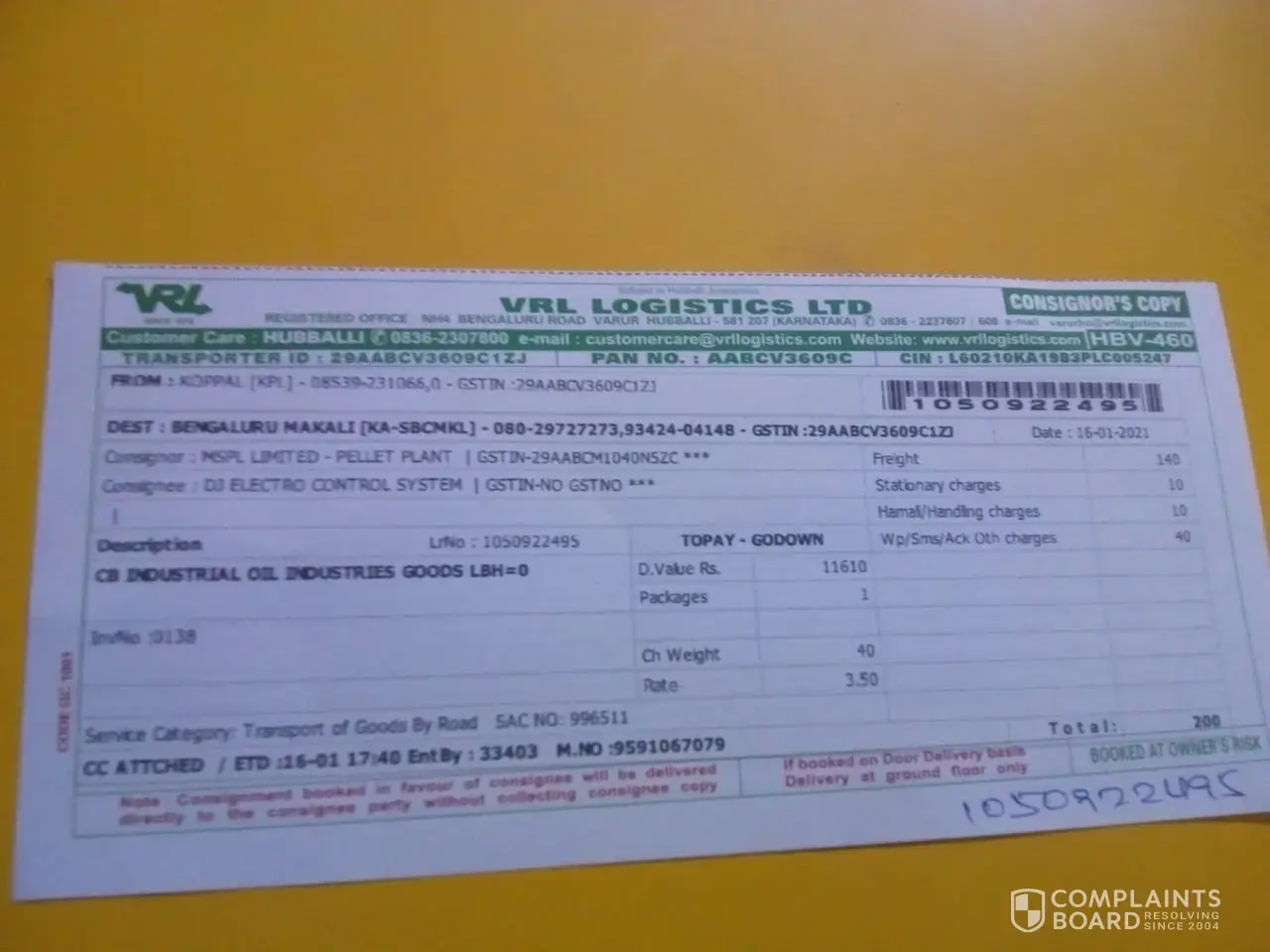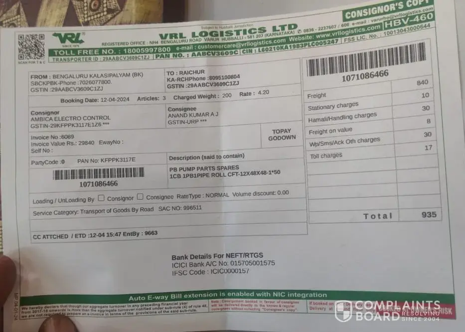 40 VRL Logistics / VRL Group Complaints