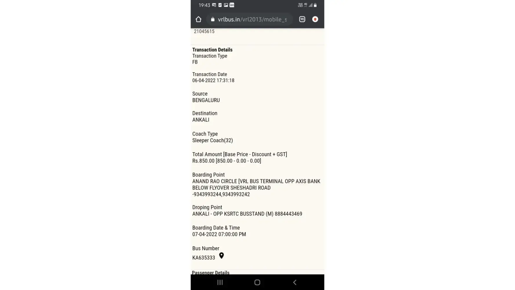 Reply Yet Not Received from VRL Logistics Staff.
