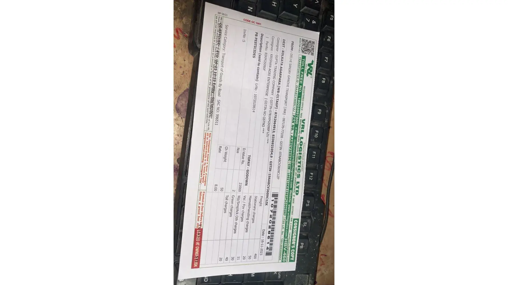 Consignment exchanged by vrl