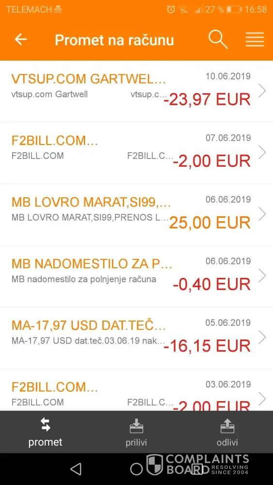 Your company Vtsup.com- Caspadata, A'dam, took on 27-05-2019, € 28.82. from my account.