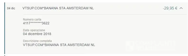 They have taken nine (9) times 34.95 € and once 5 € from my account, first to Banana Stash and later to vtsup.com * Banana Sta. The recovery name has been changed to 11/18
