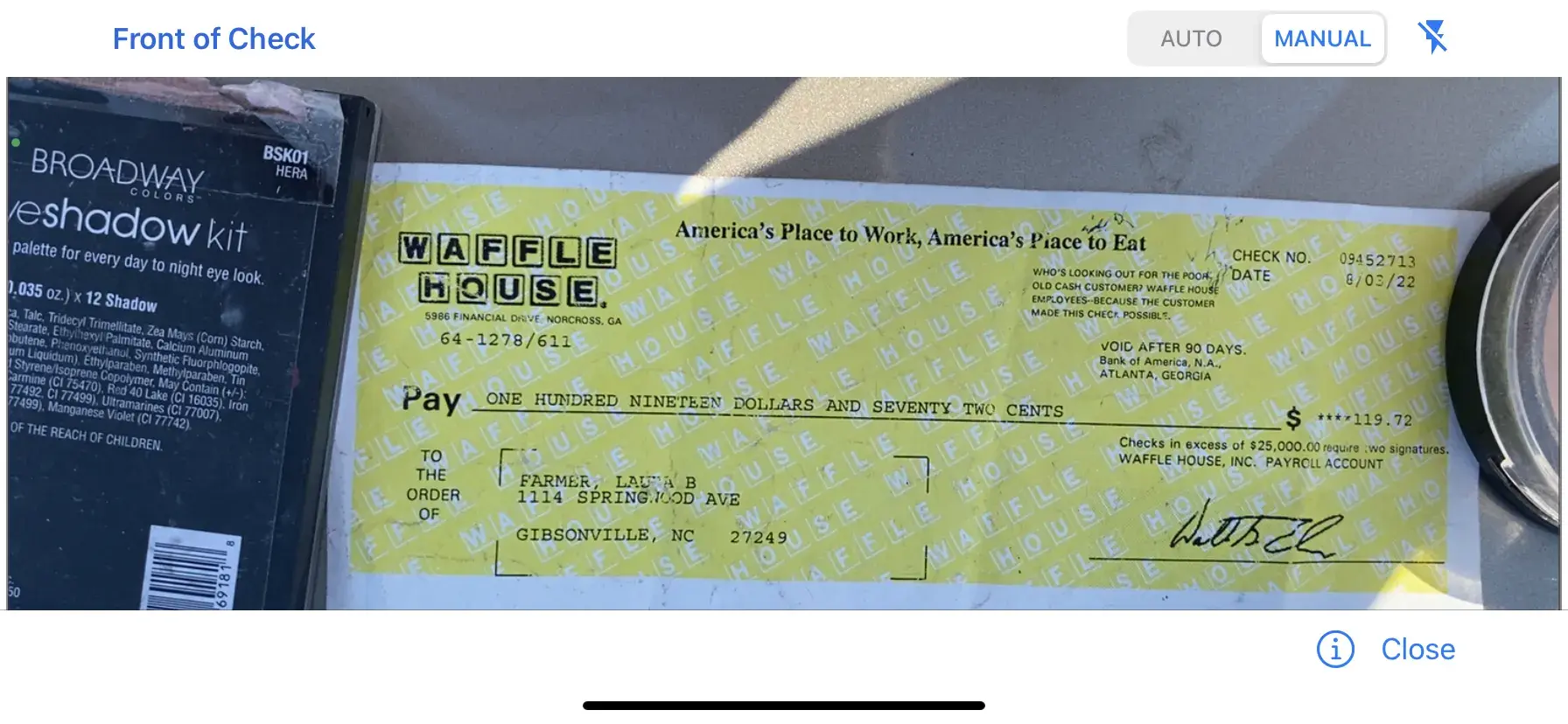 Store number 1573 charge you for an adult waffle but give you a kids waffle. It is always very thin. None of the other waffle houses fix their waffles like this. I hate to complain about a waffle but when I go to the other places and they never do this it's hard no to mention it.