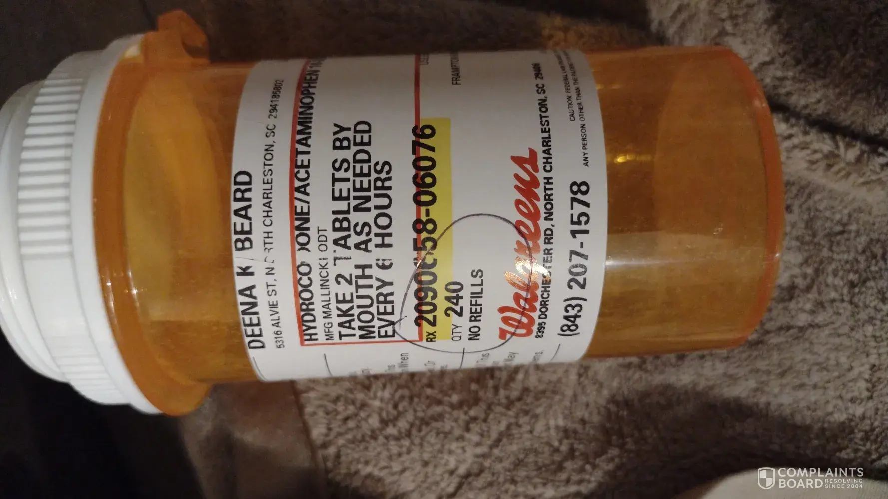 12/10/2021 I picked up my schedule 2 Hydrocodone medication, which was on file (previously called in by Dr office) I called the night before to request it be filled next morning. (Online it continued to say pending so I drove into town, I live 50 miles from Walgreens that I currently use) and at 1pm I walked in to pick up. It was still in limbo because the...
