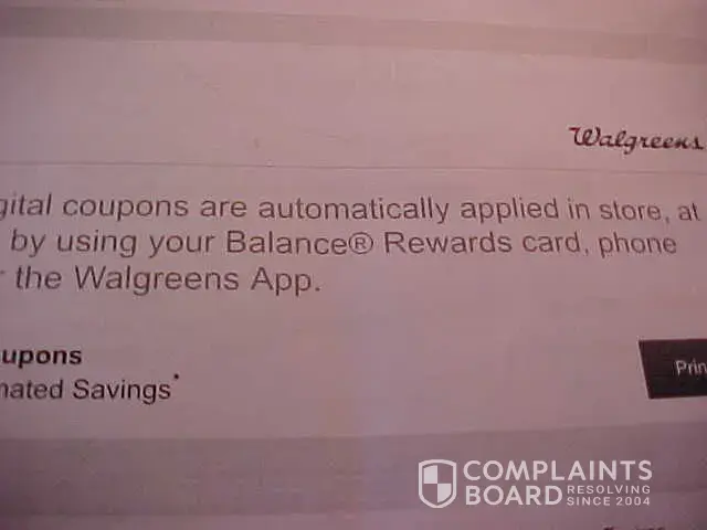 I invest time on line clipping coupons that walgreens says that will be applied to my balance rewards card. When I went to the store yesterday and checked out with the items I clipped, the store would not honor the coupons saying that I have to use the app on my phone to get the coupon discount. The system clearly when printed out says the coupons would be applied at checkout with my rewards card. I do not have a smart phone or a phone with apps. I shopped at walgreens last week and assumed the coupons were applied (I checked my receipt), they were not and I was charged full price last week, what kind of scam is this as I am not the only person that does not have a smart phone as I have also talked to some of my other friends who have experienced the same treatment and am going to talk to a lot more people to spread the word. Not everyone has the kind money to purchase a smart phone as I am elderly on a fixed budget and welcomed the sales coupons that walgreens used to provide and now do not allow me to use any on line coupons. Please fix the system so everyone can use the online coupons without having to purchase a smart phone or even know how to use one as I would like to shop at walgreens again. Thank you, mona / john zawikowski 195 w. Fairfield ct, oak creek, wi [protected]) card # [protected]