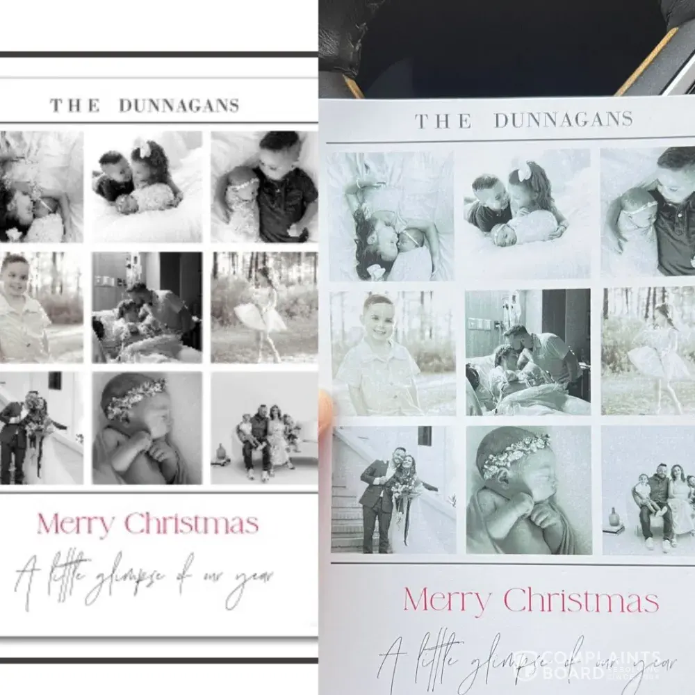 Printed Christmas cards. They did not come out the same as pictured online. Spoke with Manager John. He was zero help when coming to a solution. He basically was like oh well- Pick different pictures…