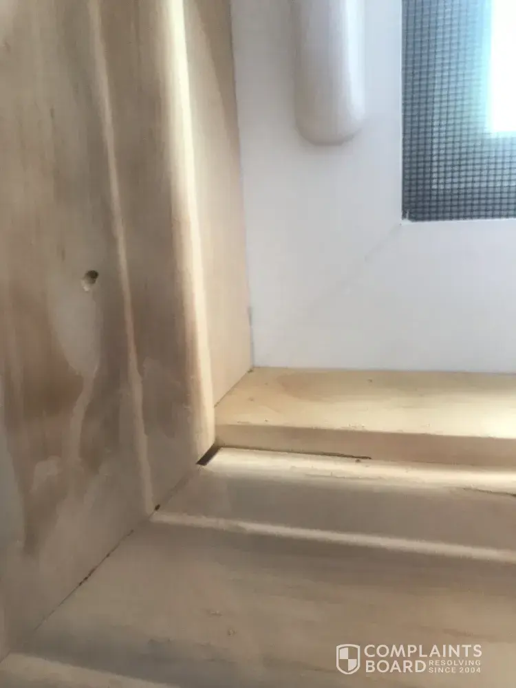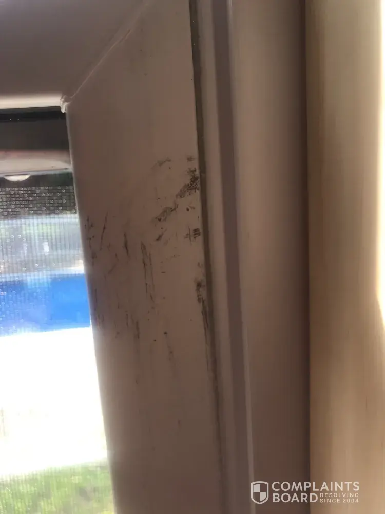 have blue plastic stuck in them. On some windows they had to put two pieces of jams to frame it in because the windows seem too small so they had to build up and fill in the opening to make the windows fit. Some reveals overlap and some don't even cover the obvious mending job they tried to do. The molding has chunks taken out out and the miter corners don't line up. They cracked our siding on the outside as well as chipped the paint off. On top of all this customer service doesn't seem to care to respond to our emails, calls and pictures.