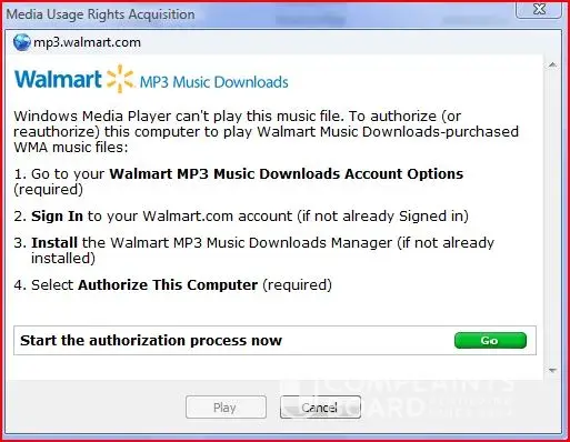 When I try to play them I get a message that the "Windows Media Player can't play this file, " etc. Then the message instructs me to go to my Walmart mp3 download account page, sign in, install the download manager (which I already did), and select "authorize this computer" which, it says, is "required." Except there is no "authorize this computer" option anywhere on the page.