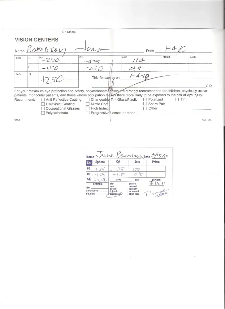 Went for an exam and purchased glasses on 1/4/2010. Realized after a week or so that I could not see the way I should. Went back to see if the Dr. Allen would recheck me. They did recheck the prescription as they had to order this out. They said there was no problem with this prescription, but asked the doctor what his opinion would be and they told me that...