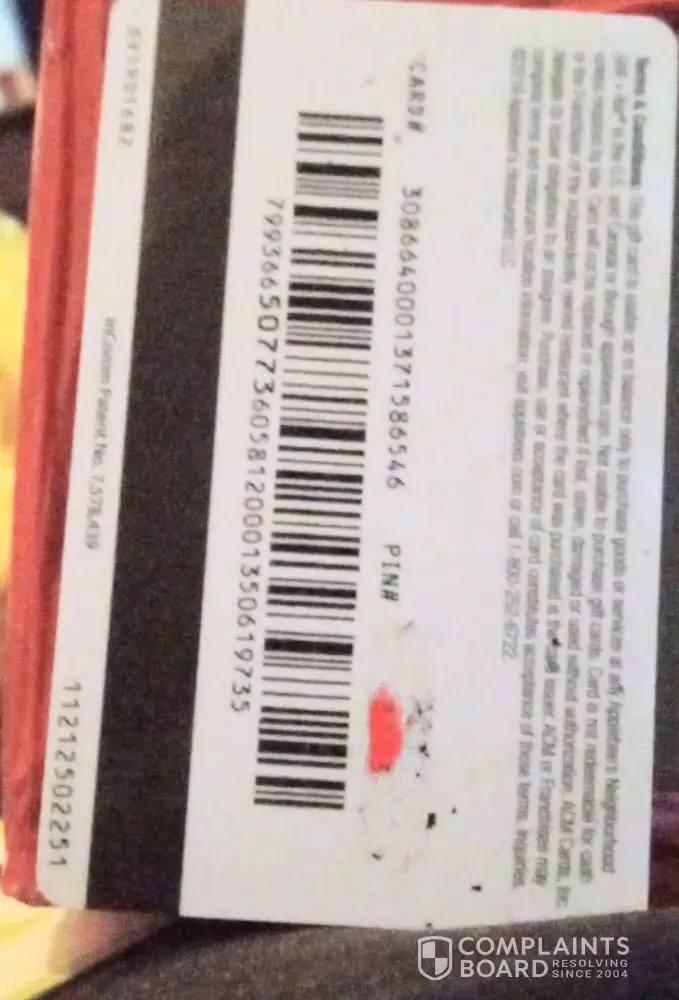 Defective apple gift card