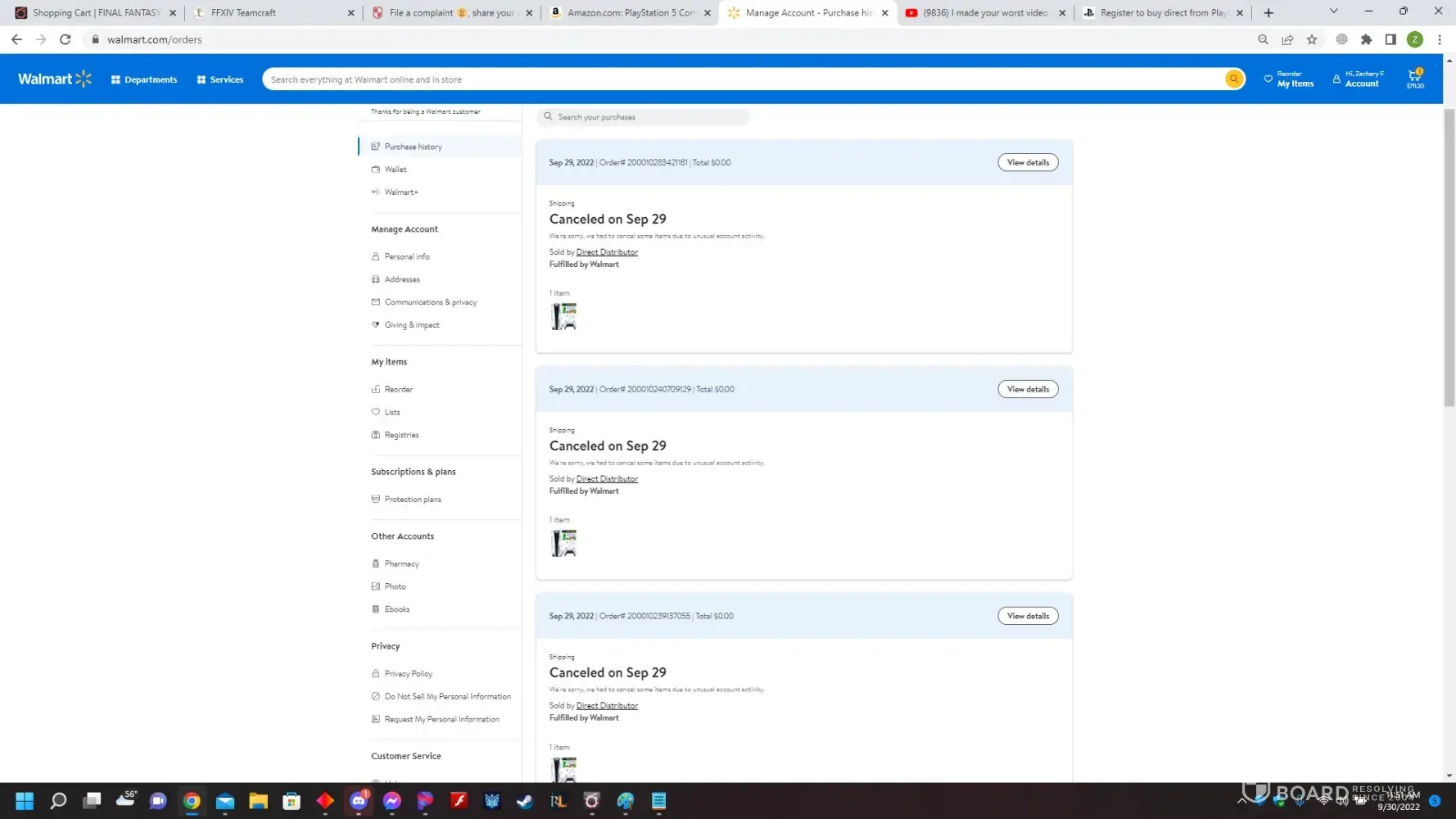 I have been trying to order a PS5 from the website for 2 days their system kept auto cancelling my order. Was told on 9/28/22 that the issue would be resolved in 24 hours, waited and retried, had same problem. 9/29/22 Contacted them yet again was assured the issue would be resolved in 30-40 minutes retried, again had same issue. Contacted them yet again was told to wait 72 hours. About an hour after the last order was auto-cancelled by their system and reversed a pending charge for the amount of the order appeared on my bank, with no order associated with it. Have tried contacting them about this and keep getting the run around. This has been an absolute nightmare for me.