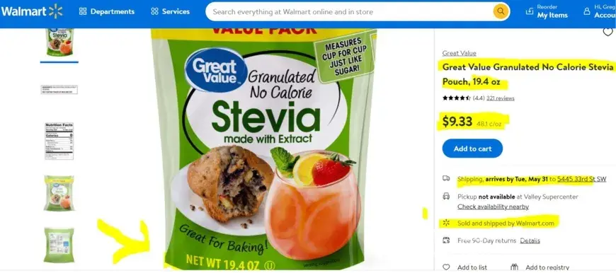 Desired outcome: Show proof of your Cost increase from the manufacturer that packs Great Value Stevia