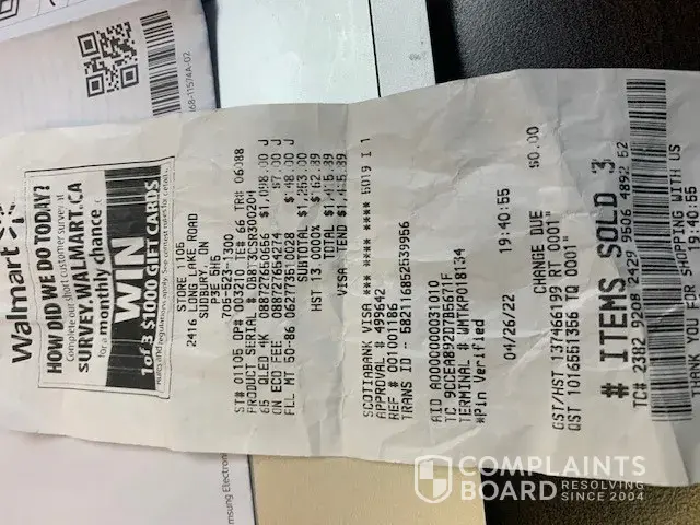 My TV Purchase - Walmart Long Lake, Sudbury Ontario