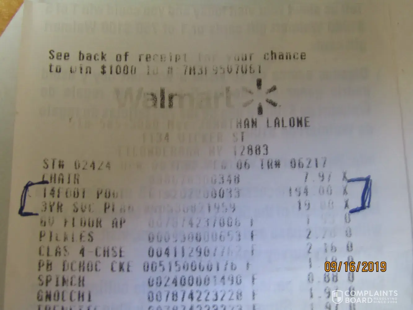 The pool that I purchased and a 3 year extended warranty from walmart on 5/31/18 along with a skimmer for holding chloine that I was told I should purchase along with the pool was broke and the chlorine fell out of the skimmer and onto the pool bottom i did not check the pool for a day and when i did I noticed a white spot on the bottom of the pool where the chlorine had eaten away at the liner and caused like a dry rot. The Skimmer that I purchased from walmart was broken at the locking device and i never even knew it.I called the extended warranty`Dept.And they said it was not coverded, They told me to call the company that made the pool, So I did The polygroup company told me that this should have been covered by my extended coverage and to call Walmart Extended protection again, After 3 days of trying to get someone to help me with this problem I am writing to you.I want my Full refund for my Extended Warranty.And this company Needs to be reported to the Better Business bureau. As I will do after sending this e.mail out. Very unhappy customer. Kimberly Curtis