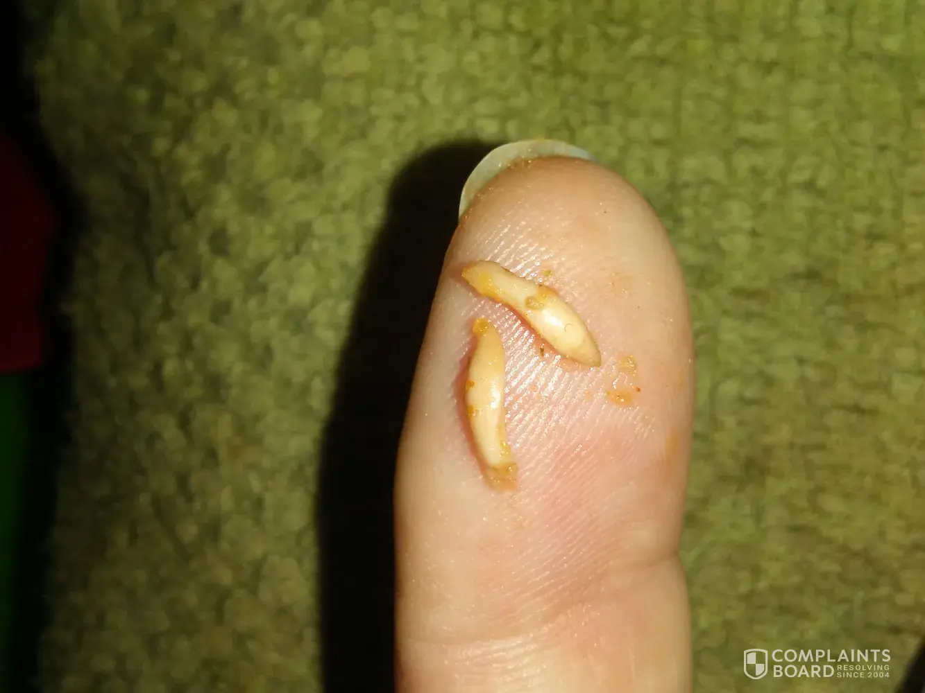 I bought a cheap tube of hamburger from Wal-Mart to make chili. As I cooked the meat a lot of small white things became visible. Upon closer inspection they are small worms. I know there are white things that are always in cheap hamburger but these were small uniform bits. I have pictures. This is the second time I have bought hamburger like this with worms in it.