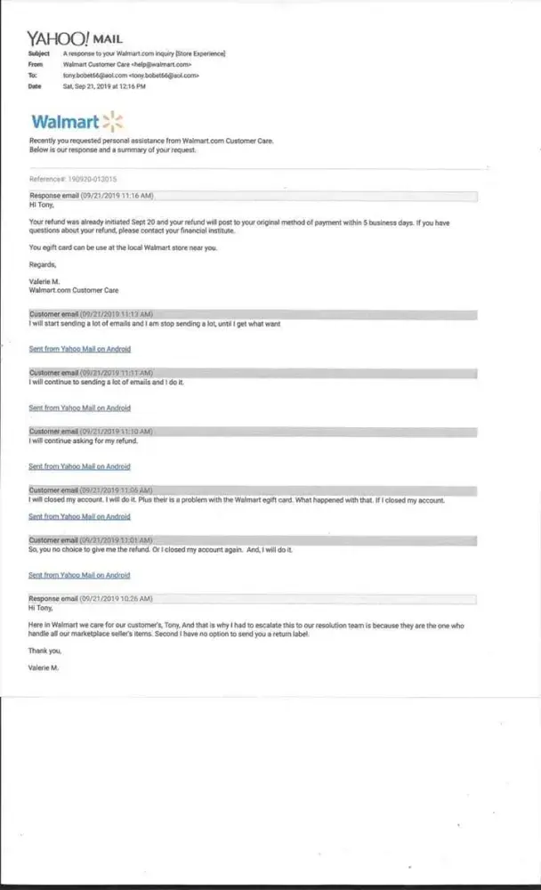 I really think this is very bad walmart experience for the first time, I have been a customer for last several years but never had such issue. If there is a policy or you cannot support you need to be clear on communication