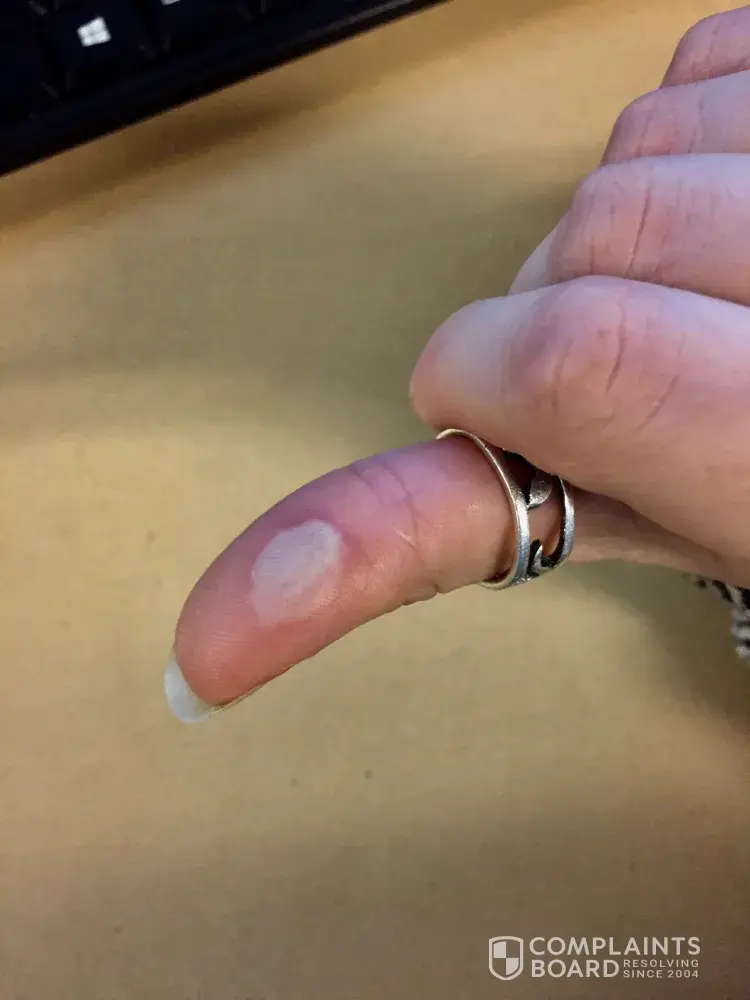I am not sure what a solid resolution would be to this problem. The oven mitt was inexpensive, a refund would not really solve the problem of the pain of the burn as well as the ruined glass dish/my meal. I do not want another one of these products, I do not trust them to be adequate for my safety. I guess a refund would be nice in the end; however, this is a major problem and I am very upset about the pain and nuisance this has caused me.