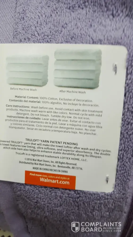 I purchased better homes & gardens 5 bath towels - 2 hand towels & 4 wash clothes from walmart in wood river, il. We followed washing instructions on label. We purchased the purple dust color towels & pink splotches appeared on them which looks terrible after one washing. Walmart refused to let me return them because they were washed. I am very upset because these towels were so nice & a perfect match to our main bathroom. Were the washing instructions incorrect? wash warm water by themselves - do not bleach - tumble dry low.