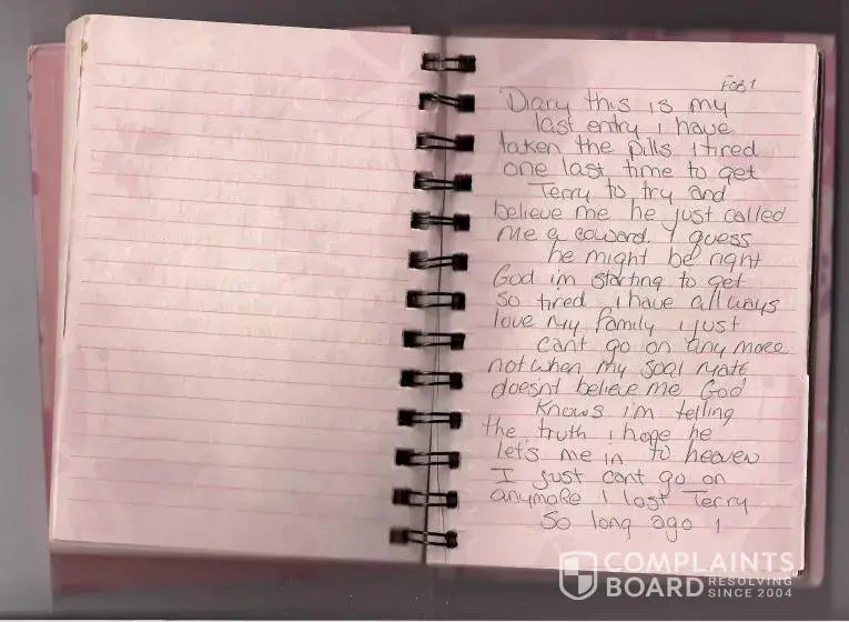 2006 By the time of Joan Wagar writing this written confession that she uses antifreeze as poison I was so debilitated at this time I was bedridden, Joan Wagar tossed this at me like it was a Frisbee because she wanted to see if I could get out of bed to try and find help or not, I could not!