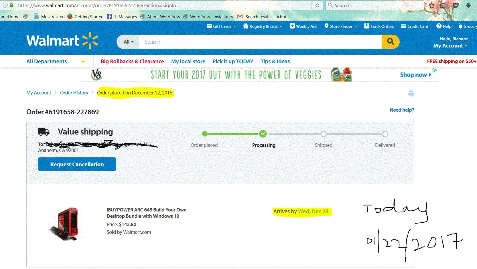 I ordered a television to be delivered at my home 1224 N 4th St. It was to come on Monday and it has not arrived, but the funds were taken out of my account