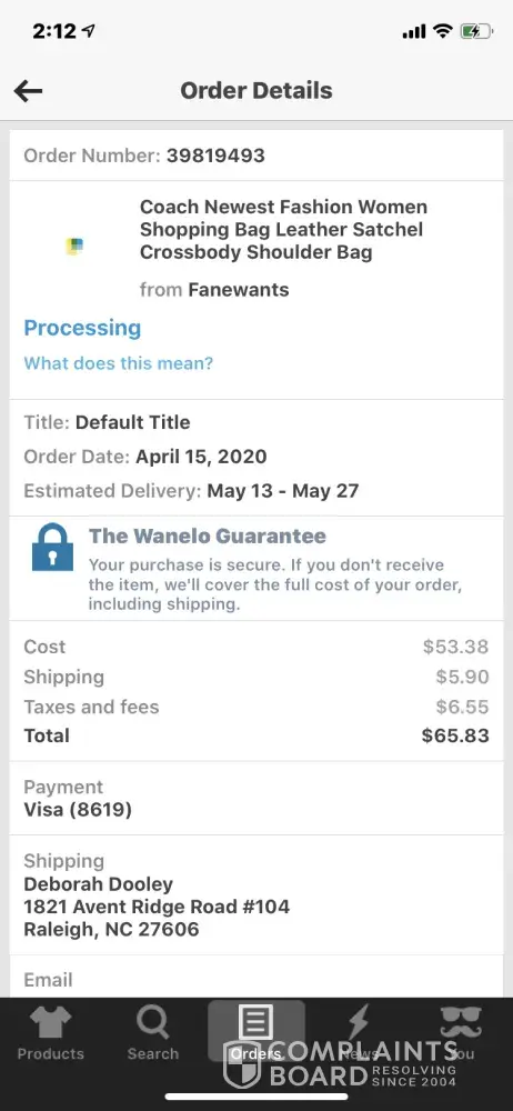 I've contacted the BBB. Writing reviews everywhere possible and will be blasting this on social media so other people aren't taken advantage of by Wanelo too! I placed an order on March 3, 2023, and still have not received my purse. I have left multiple voicemails and till have not received my purse. I have emailed them many times, placed a complaint, and I always get the same answer. We are working on it, and I have never received my money back, and they say they have a guarantee. MOST HORRIBLE EXPERIENCE AND THEFT SHOULD BE CHARGED TO THIS COMPANY BECAUSE OF THE MONEY THEY STOLE FROM ME!