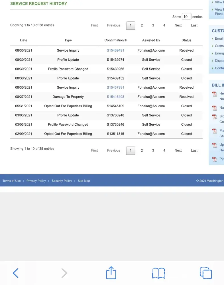 Since August 9th (today is Sept 14th) I have called and emailed Washington gas. I am greeted with an automated message that services are going to be improved. No human ever picked up the phone or responded to my emails.