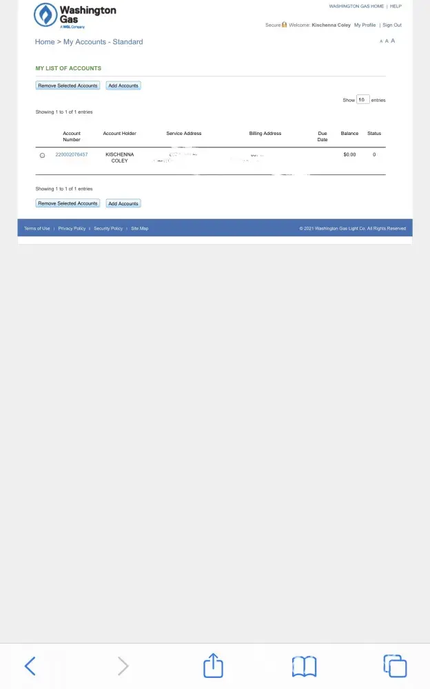 I have lived at my current address for 3.5 years. I moved in on Nov 17, 2017. As of Jan 2021 and quite mysteriously, Washington Gas canceled my service and sent me a final bill. I called to get it reinstated -- we do have gas -- but they seem unable to figure out how to get me a gas bill or fix my account. I have spent 4 separate occasions in the past few days trying to reach out to Washington gas and EVERY SINGLE TIME it takes > 45 minutes and they hang up on me. Its INFURIATING!