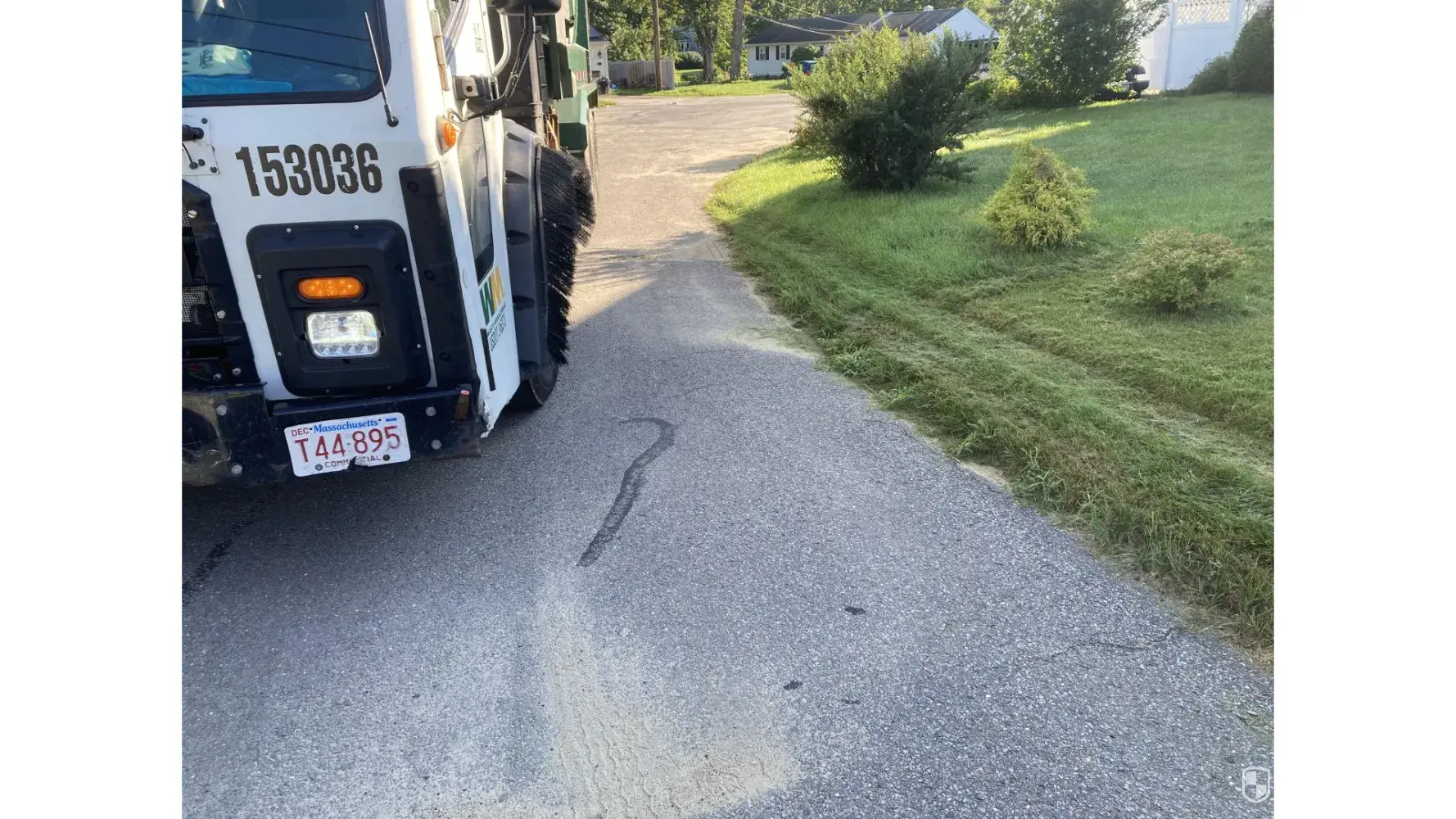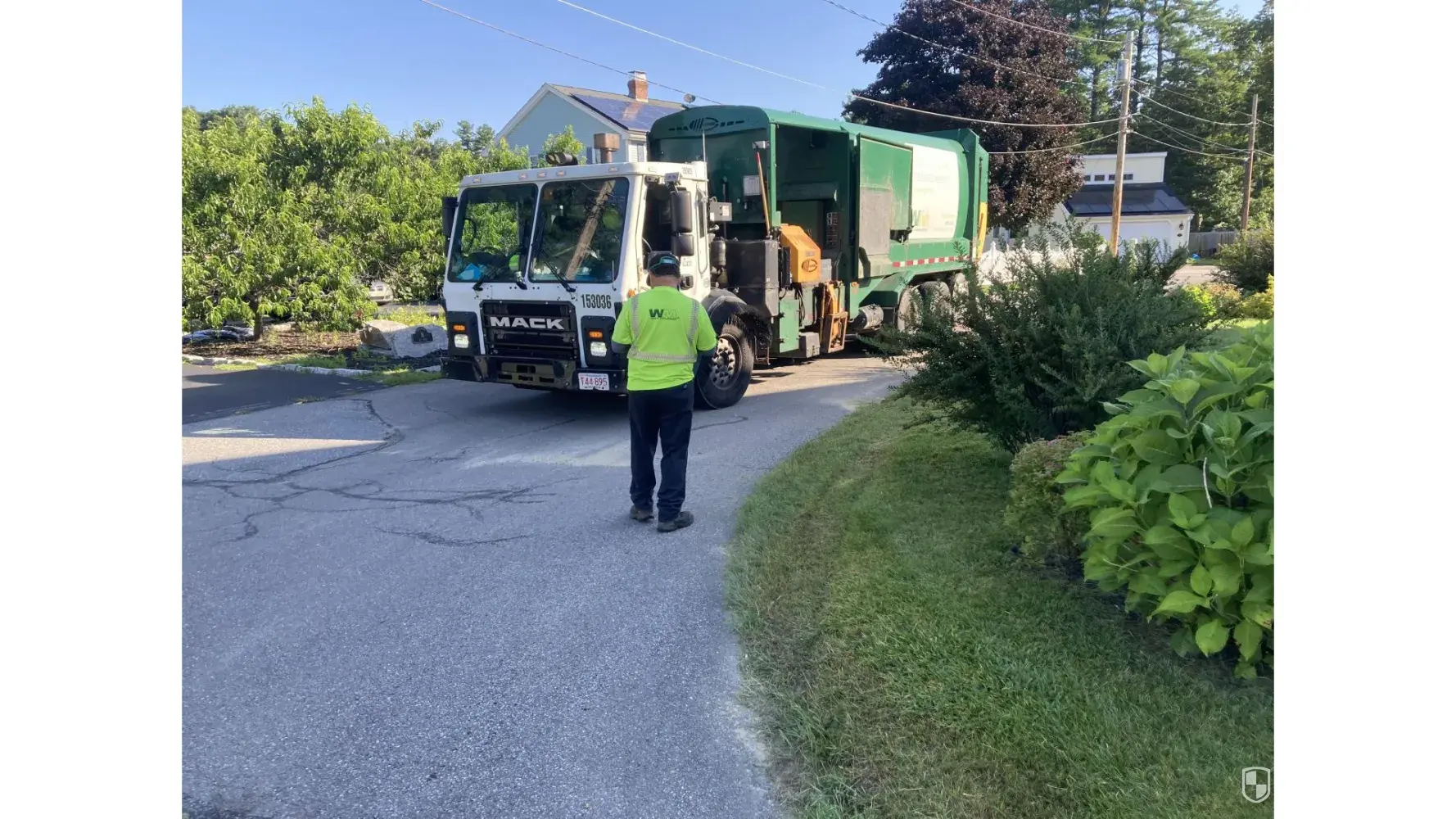Waste Management recycle truck #153036 Ma. Lic. # T44-895 drove over my lawn ! The driver, Alexander, admitted that he made a mistake and cut the turn too close to the edge.