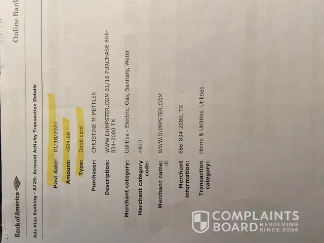 This is in regards to an order placed on January 18, 2022, for a residential dumpster at 30597 N. 77th Place, Scottsdale, AZ 85266. I am an interior designer and was assisting my client to get her home ready for the new owner to take possession of her home.