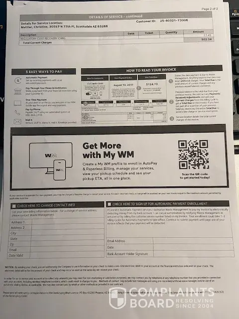 Since the pandemic I've lost my job force to retire and now living on a fixed income. I have told comcast (internet service) to cancel my service at the end of the month which means all creditors have been notified im opting out of email bills. WM will add to my stress by adding $8.50 to my 24.00 per month bill. What regulatory commision to I report this too? I will be taking my trash to the incinerator until this is resolve.