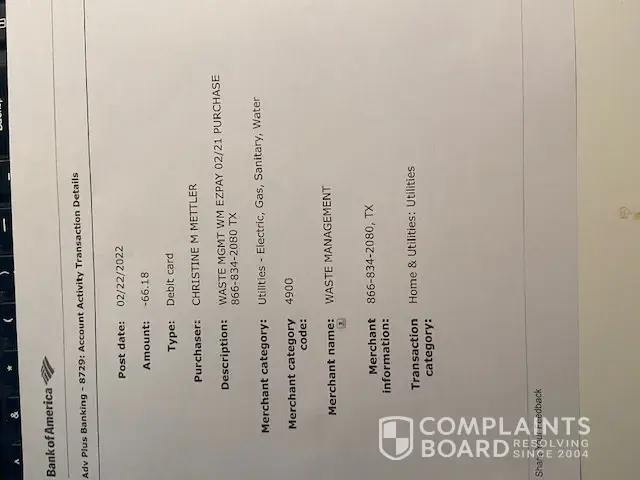 We live in an area where we used to have a different trash company, and a couple years back we were bought out by waste management. So we continue to pay our bill to them. Prices continued to go up though, and the other local competitor was much cheaper, so we called to cancel with WM and the woman lowered our bill. We paid our invoice for January 2022. Some other factors were at play in our decision too, so we ended up calling back to cancel service completely after all. We cancelled and scheduled for our last pickup to be the last Monday in January 2022. Now they are trying to bill us for more money AND saying we have a $75 “removal feeâ€?! But guess what? The can belonged to our OLD trash company. It’s not like it’s even their can (yes, I understand it becomes their property upon buying them out, but different than them incurring a cost for bringing us a can in the first place) I said “so we have a charge for ending our service, you illegally rolled us into a contract, without our consent? We weren’t made aware of any fee at the time of cancellingâ€. He said “oh it’s on your bill and it’s not a “contract†it’s for removing the cartâ€. Um. What? This is absolutely wrong. We didn’t have a fee for ending service with our old company and never “agreed to terms†or signed anything! They can’t just put people under a contract or “terms†or make us subject to paying fees we wouldn’t have had before. That is called a contract and we would have had to sign and agree to that. In beginning to make forward process on this and next steps, I have come across many many many complaints against WM and them doing this to other customers as well. I will be taking this to the BBB if it isn’t resolved. Very disappointing to see more big businesses with such a lack of honesty/being forthcoming and poor customer service.