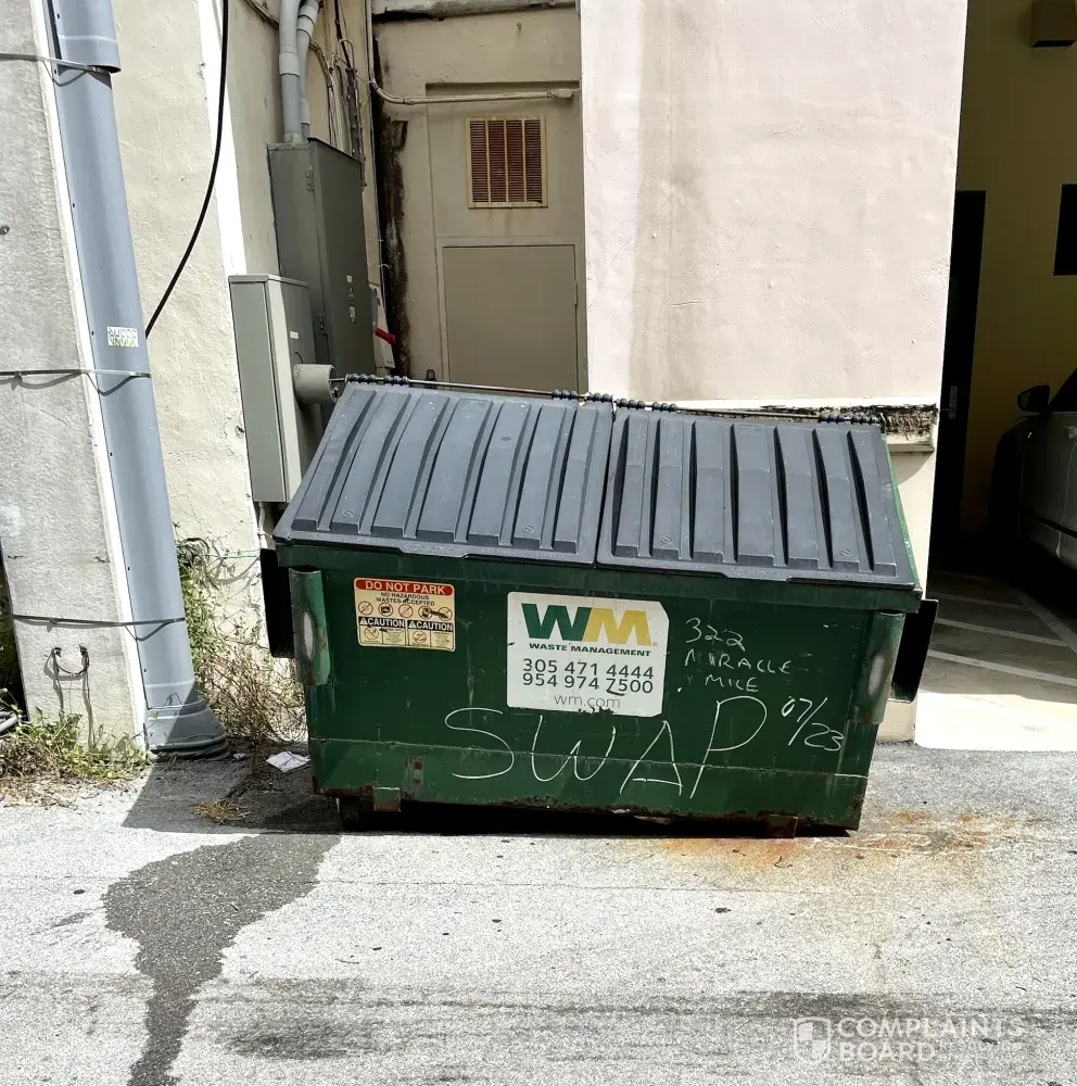 I'm hoping you can assist me with an issue I've had for over 1 year. I have called on numerous occasions within this year span, but no one listens or seems to care. I am the building manager at the addressed 320 & 322 Miracle Mile, Coral Gables, FL 33134. Behind our building there is a dumpster which is rusted and missing wheels. This is an eyesore to say the least. Our tenants pay a reasonable amount of money to have to see such a poorly kept garbage bin.