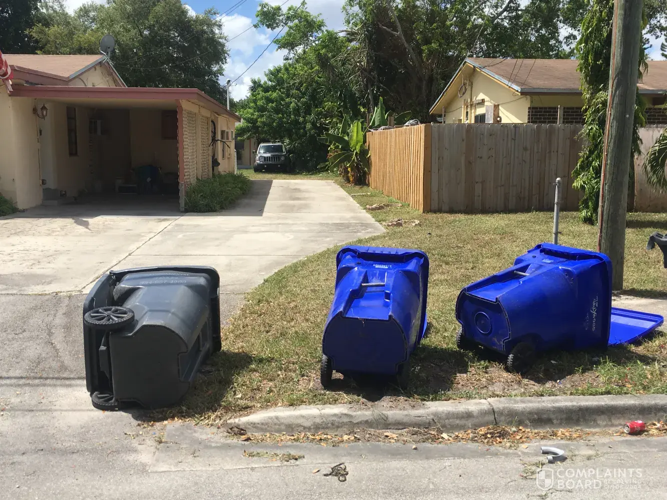 I don't understand what's SO hard to put the garbage cans and the recycle bins back where they belong. They do not belong in the middle of my driveway so I can't pull in! Multiple times I have had to stop in the middle of the street, get out of my vehicle, and pick the cans up and move them back to where they belong. I really don't appreciate my cans being knocked over and just left there, without being picked up and put back where they belong. This has been going on way too long and I pay for my garbage pickup every month! This is ridiculous!