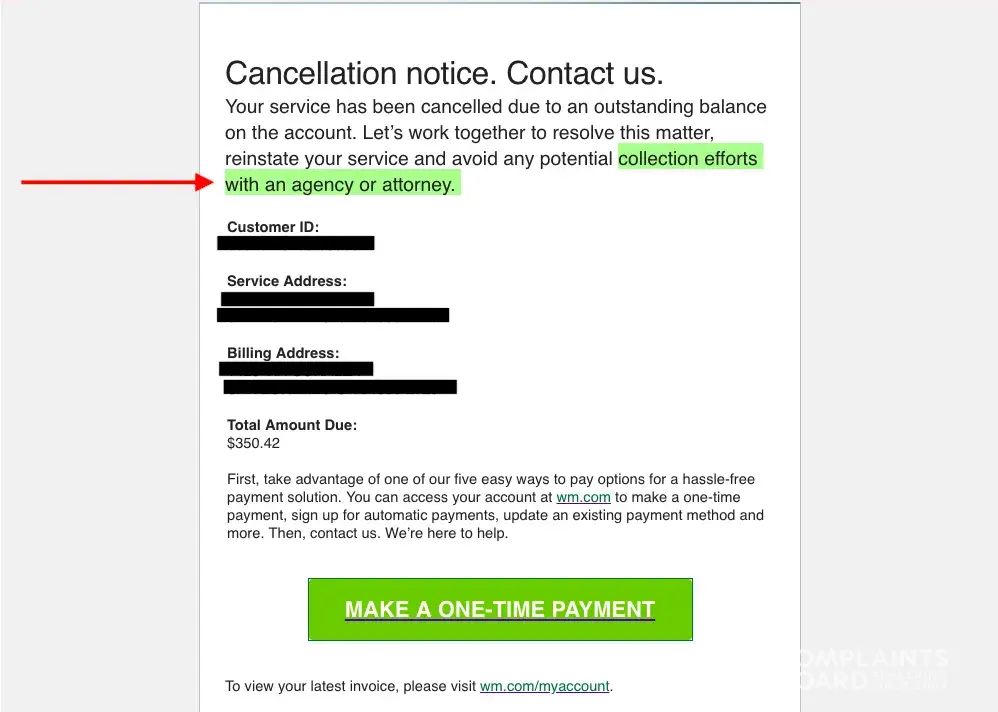 Their service agreements are one sided and a bad deal for their customers. Don't use them, try to find a local company and write your own agreement. If you must use Waste Management cross out their service contract and write your own terms. The industry known for their shady ways. Beware.
