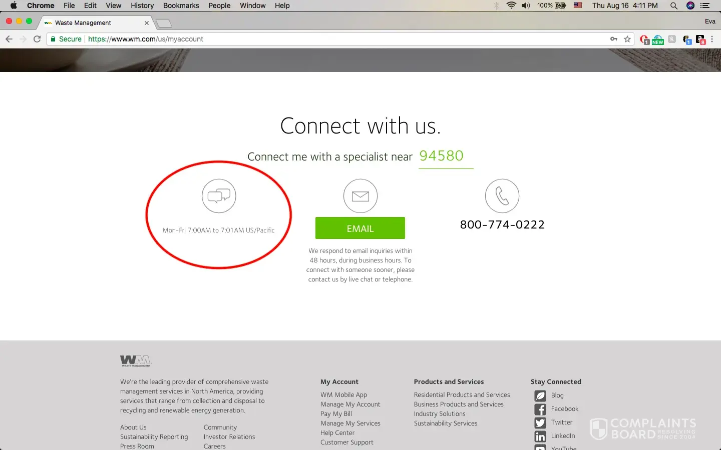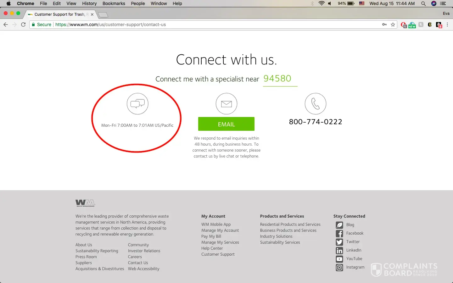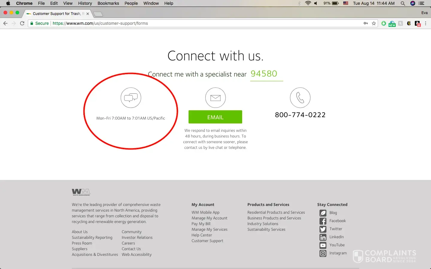 Waste Management [WM] emailswmcares@wm.com100%Confidence score: 100%Support