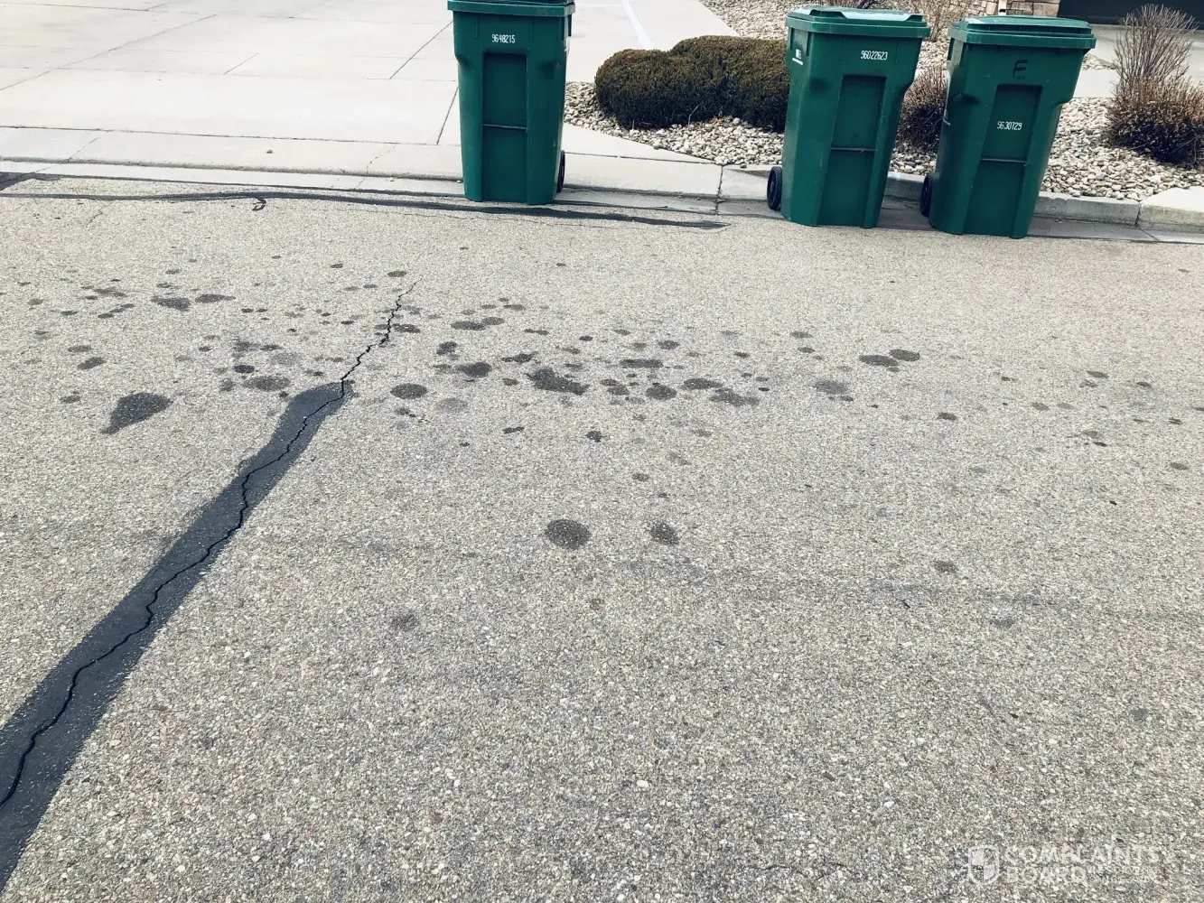 The other side of our street is serviced by the City garbage pickup and they do not have oil spots all over the front of their homes.