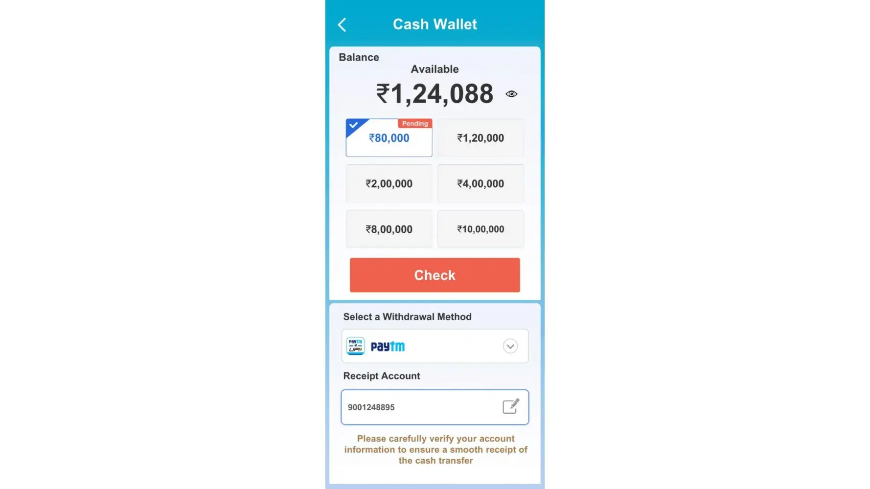 My winning amount is not credit in my account