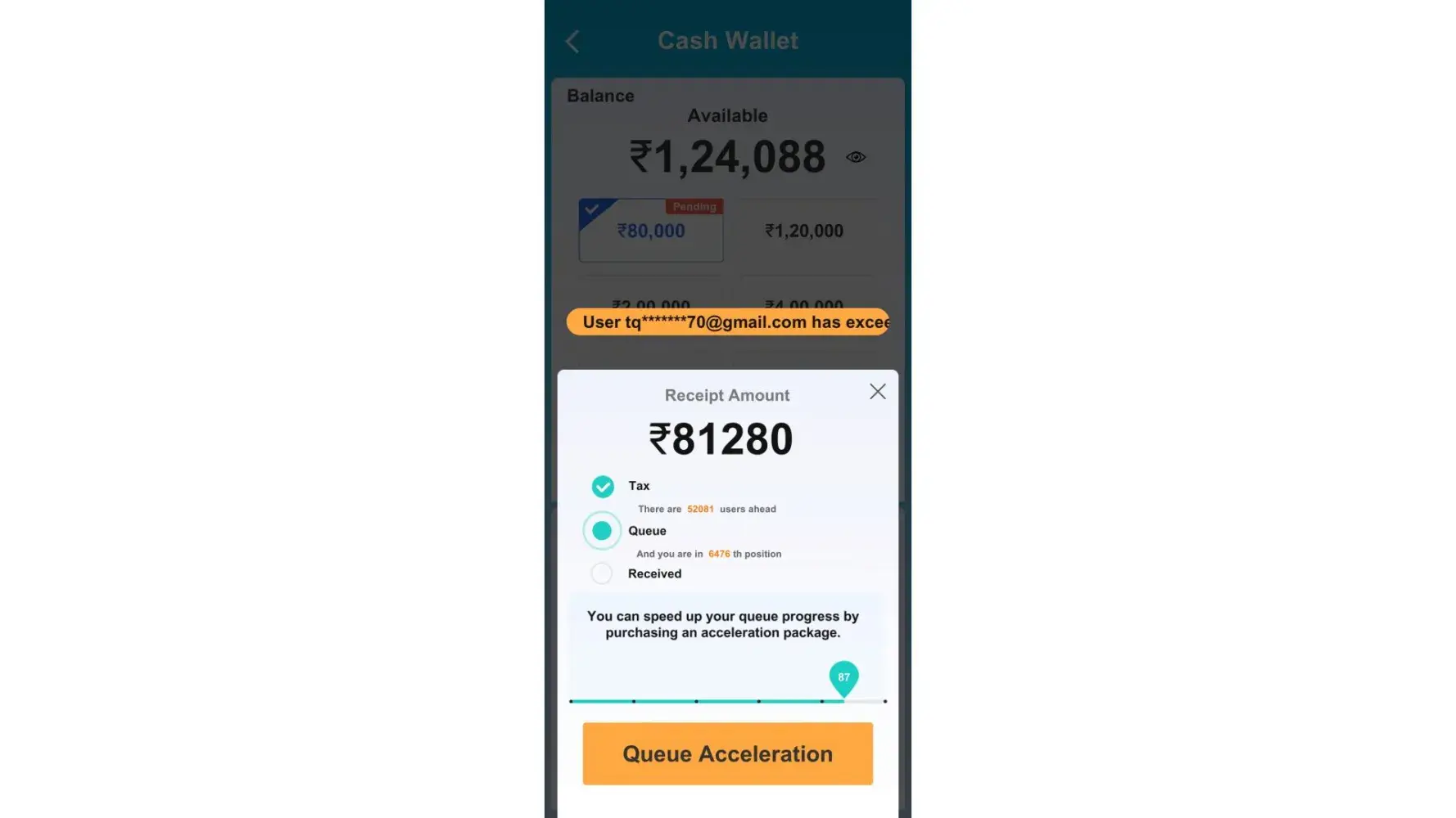 When I opened this app I won much amount of money and then at the time of withdrawing it show that I have to make payment of it frst after making frst payment it showed that I have to make more payment like for tax and acceleration of queue like this I lost my 1800 which I want back now