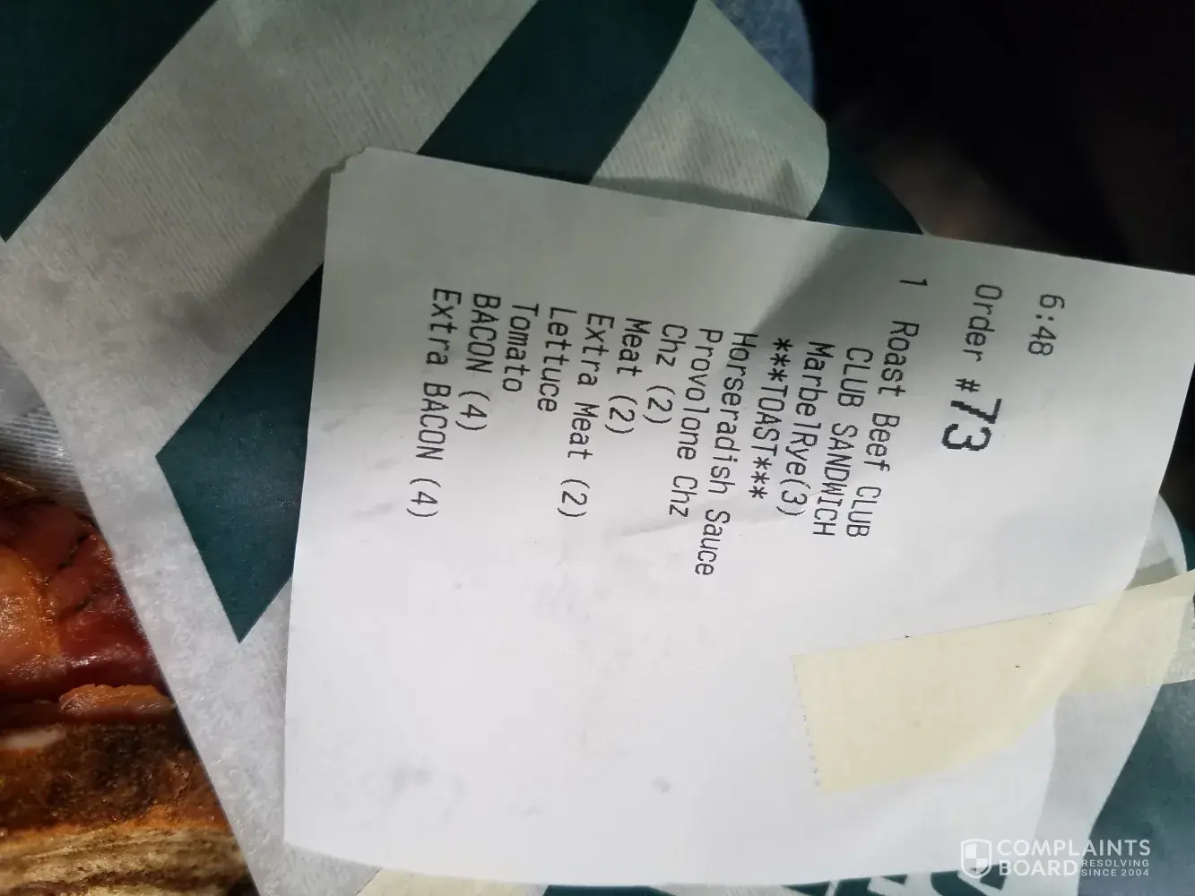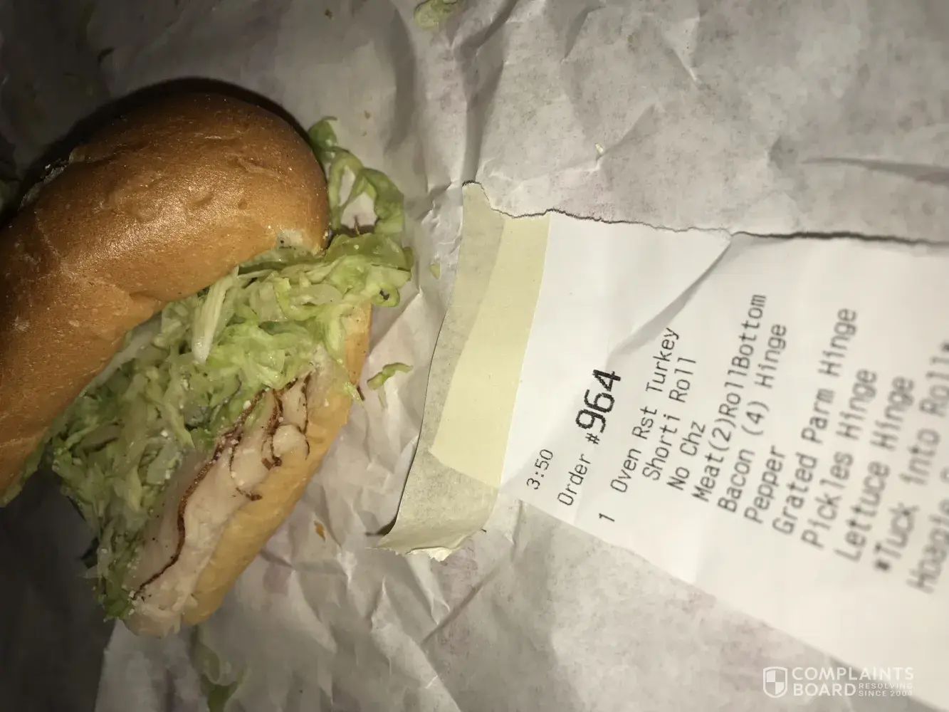 Ordered a turkey hoagie with specific toppings such as pickles and bacon which I paid extra for. When I open my hoagie it was just turkey and lettuce. I have photo evidence of my slip and the messed up hoagie as well. I feel the need to complain about this because this is an everyday thing at this wawa. The greater issue is this wawa itself. The food order...